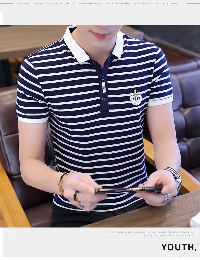 Summer business casual men's short-sleeved t-shirt lapel cotton striped polo shirt t-shirt middle-aged and young plus size clothes コットン カジュアル 大きめサイズ サマー 夏物 ストライプ Tシャツ doushi28504073368