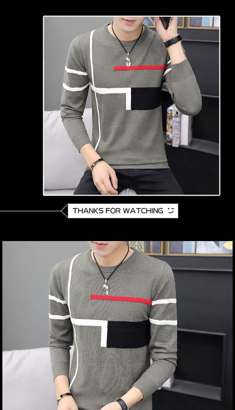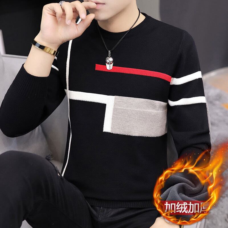 Sweater men's spring and autumn knitted sweater version trend loose cashmere bottoming shirt plus velvet thick ese top スプリング 春物 オータム 秋物 doushi15575749393