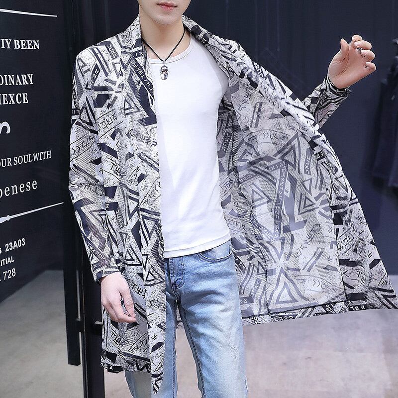 Summer thin breathable sunscreen men's jacket version trendy handsome mid-length windbreaker personality hollow cloak サマー 夏物 doushi23283675796