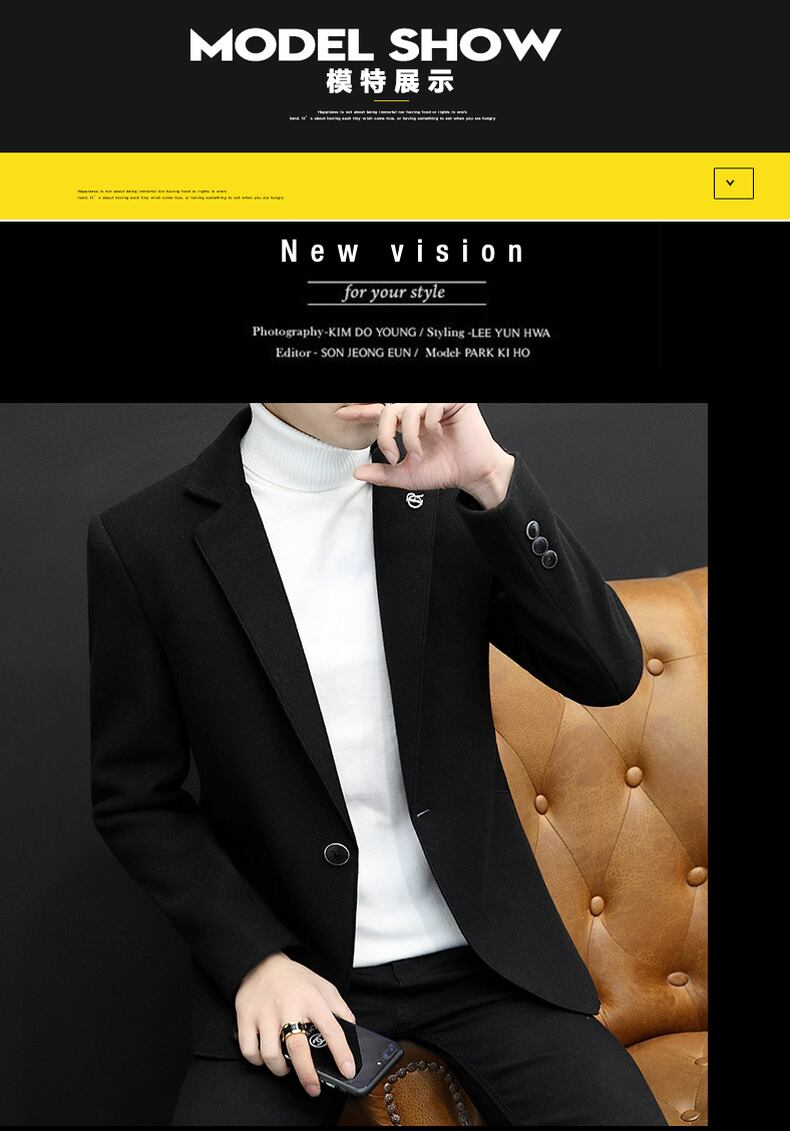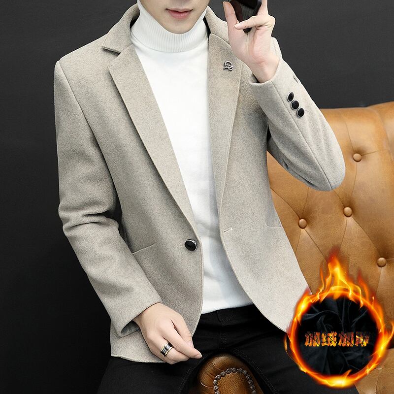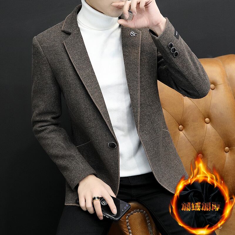 Plus velvet thick casual suit men's version trend woolen suit autumn and winter single western warm windbreaker jacket カジュアル オータム 秋物 ウィンター 冬物 doushi63850531574