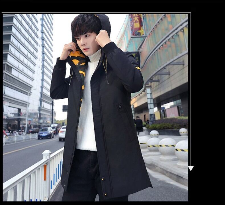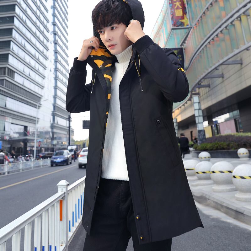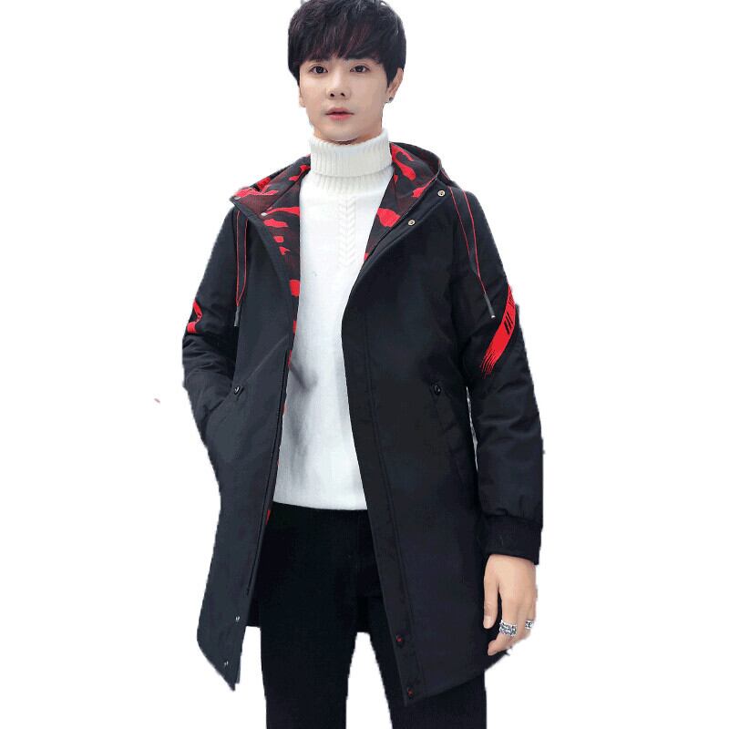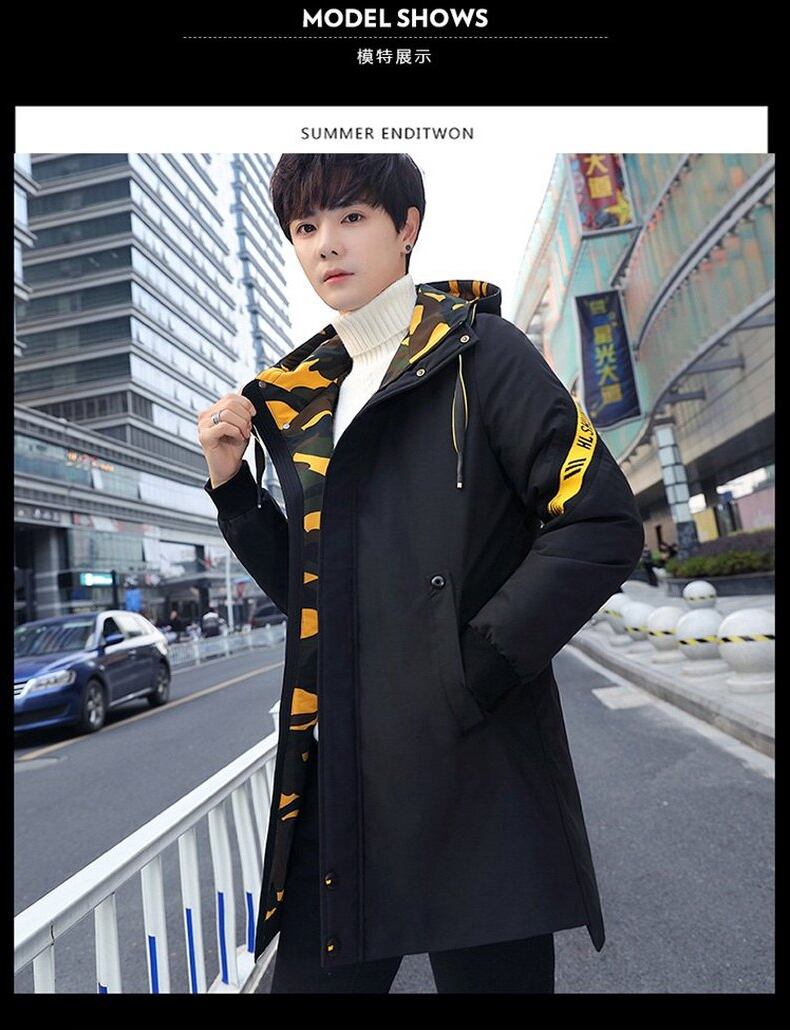 Mid-length coat men's cotton coat autumn and winter trend top clothes plus velvet thick padded jacket winter down jacket men コットン オータム 秋物 ウィンター 冬物 doushi38793842123
