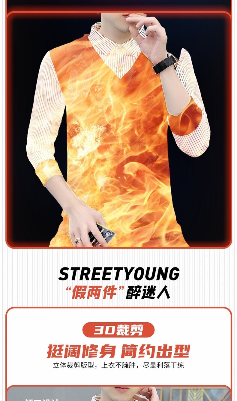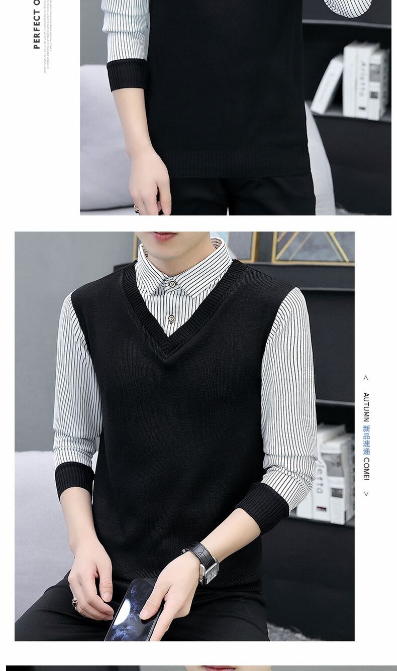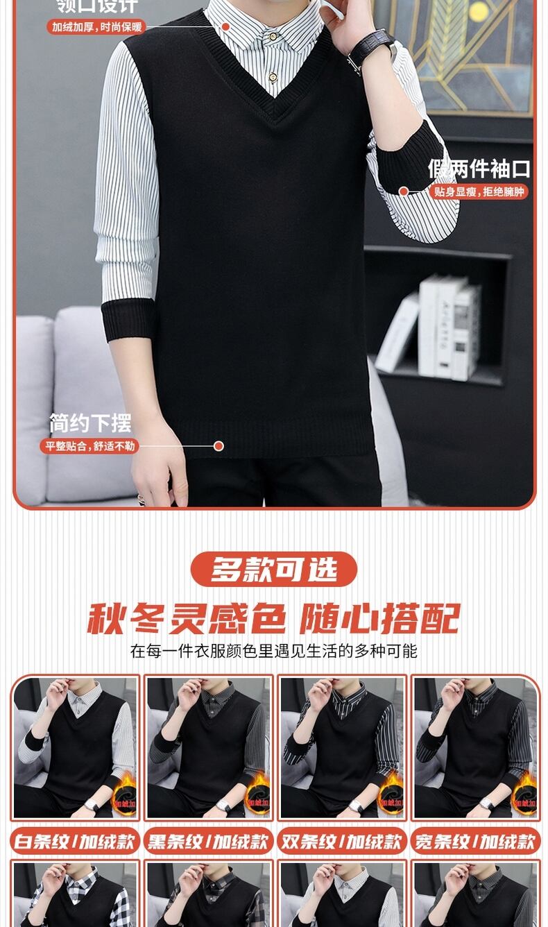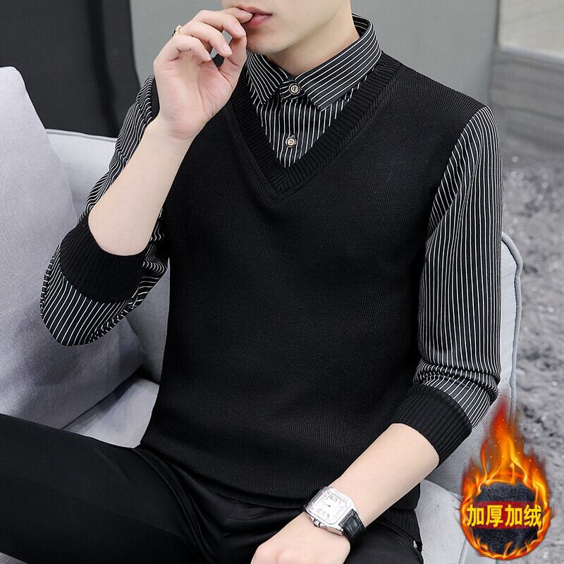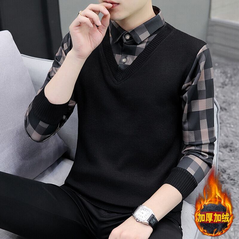 Autumn and winter holiday two-piece sweater men's shirt collar plus velvet thick knitted sweater men's collar warm top オータム 秋物 ウィンター 冬物 doushi43914781993