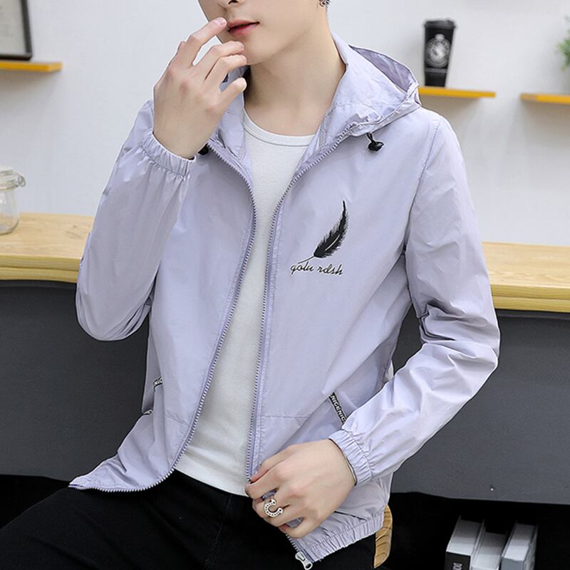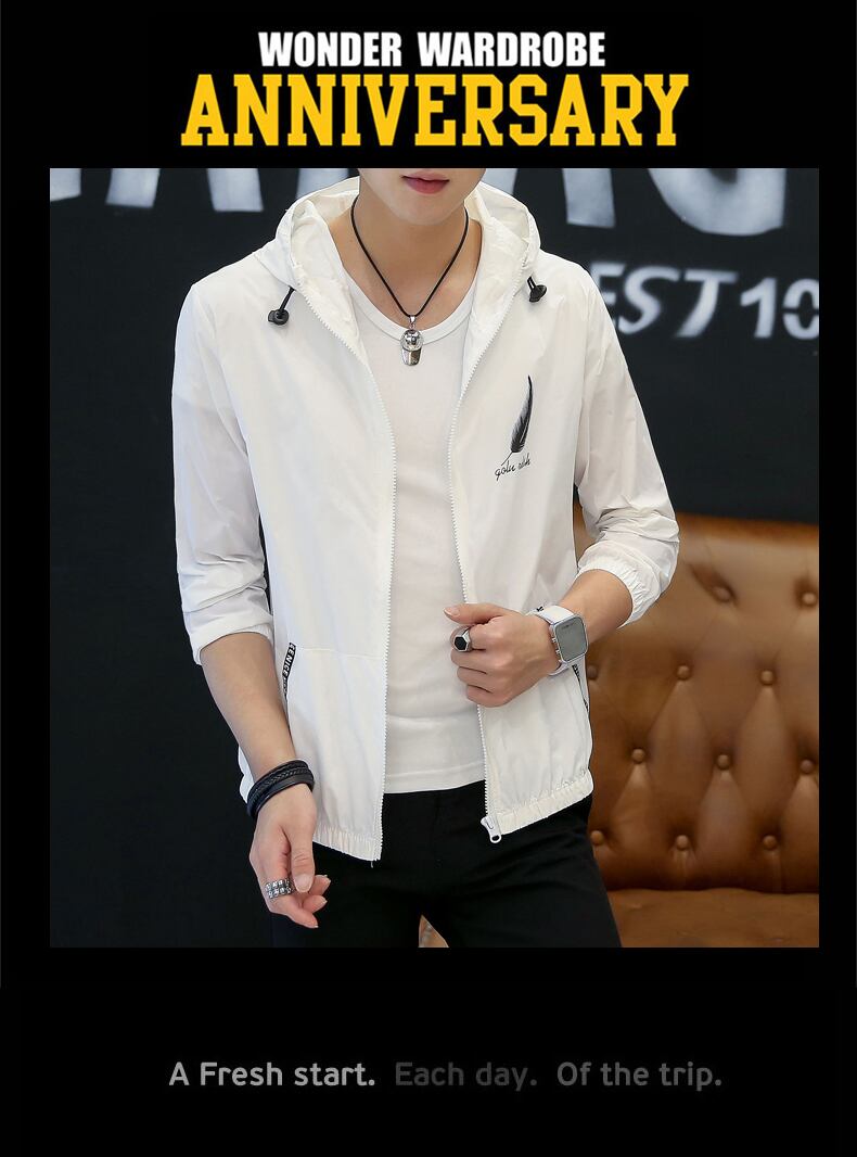 summer men's white hooded jacket men's thin sunscreen shirt handsome middle student jacket trend summer clothes ホワイト サマー 夏物 doushi45394185572