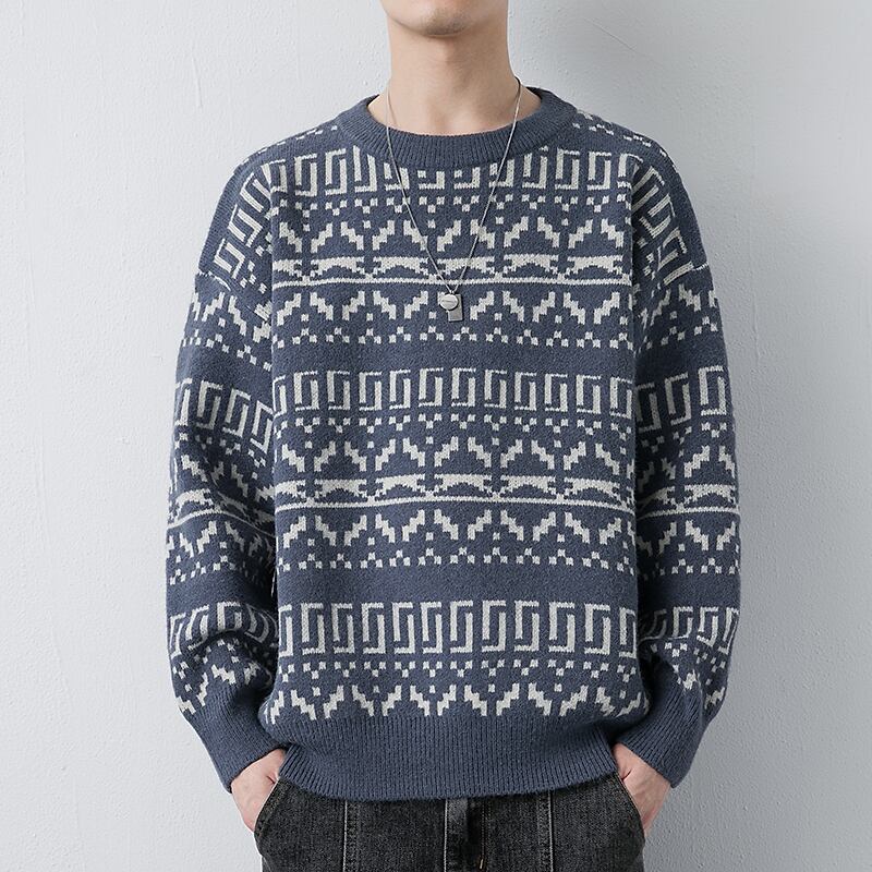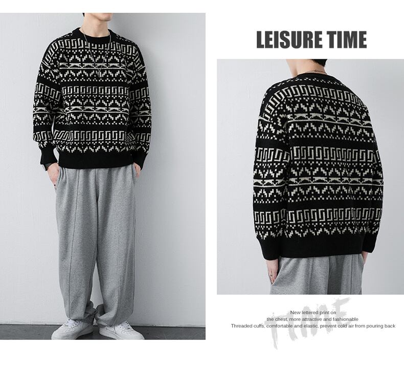 Men's Retro Crewneck Sweater Autumn and Winter Sweater Trend Loose Winter Men's Knit Sweater Cashmere Top レトロ オータム 秋物 ウィンター 冬物 doushi36789192603