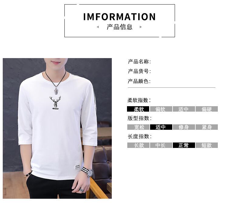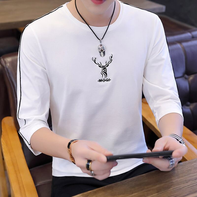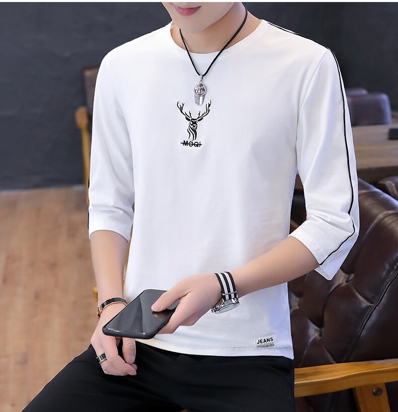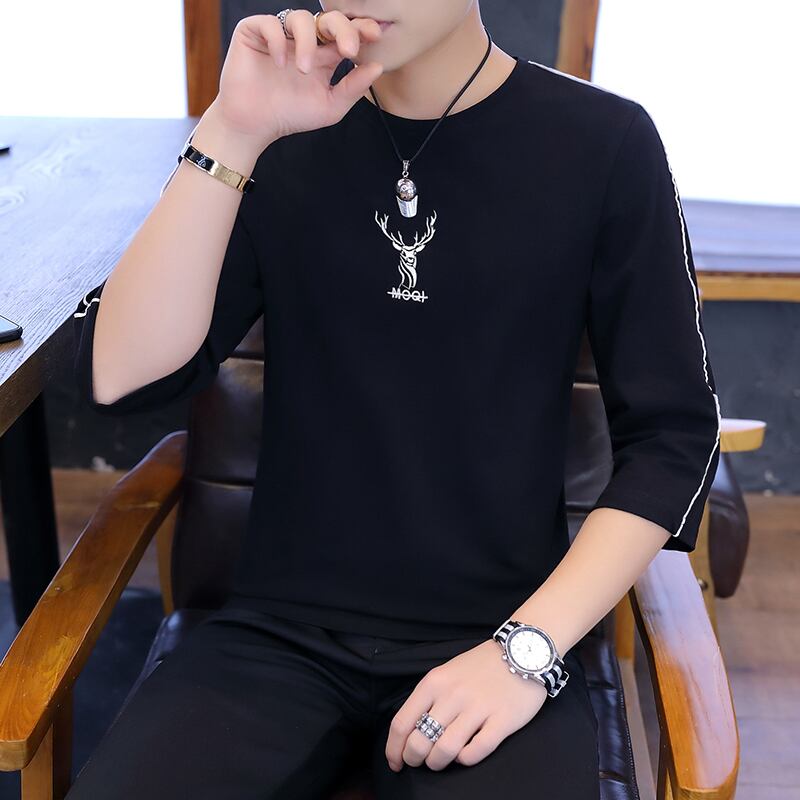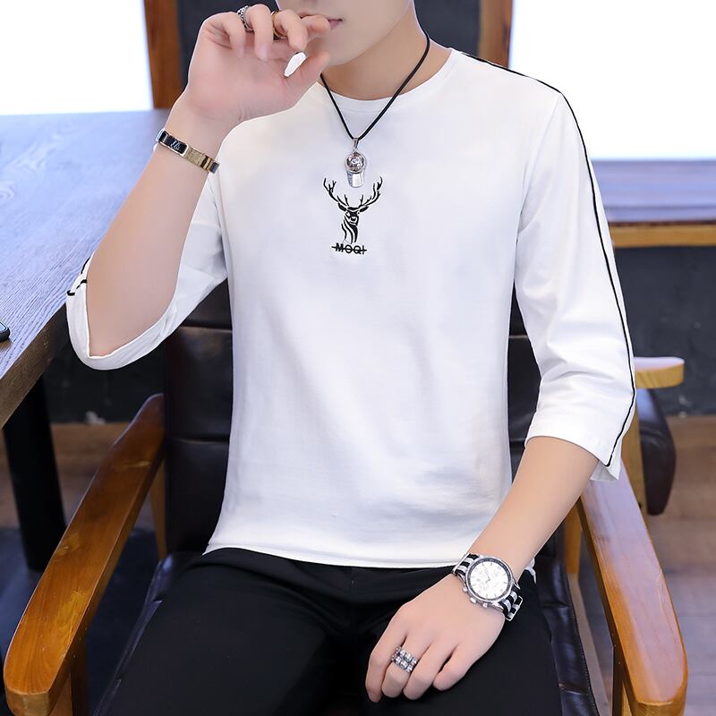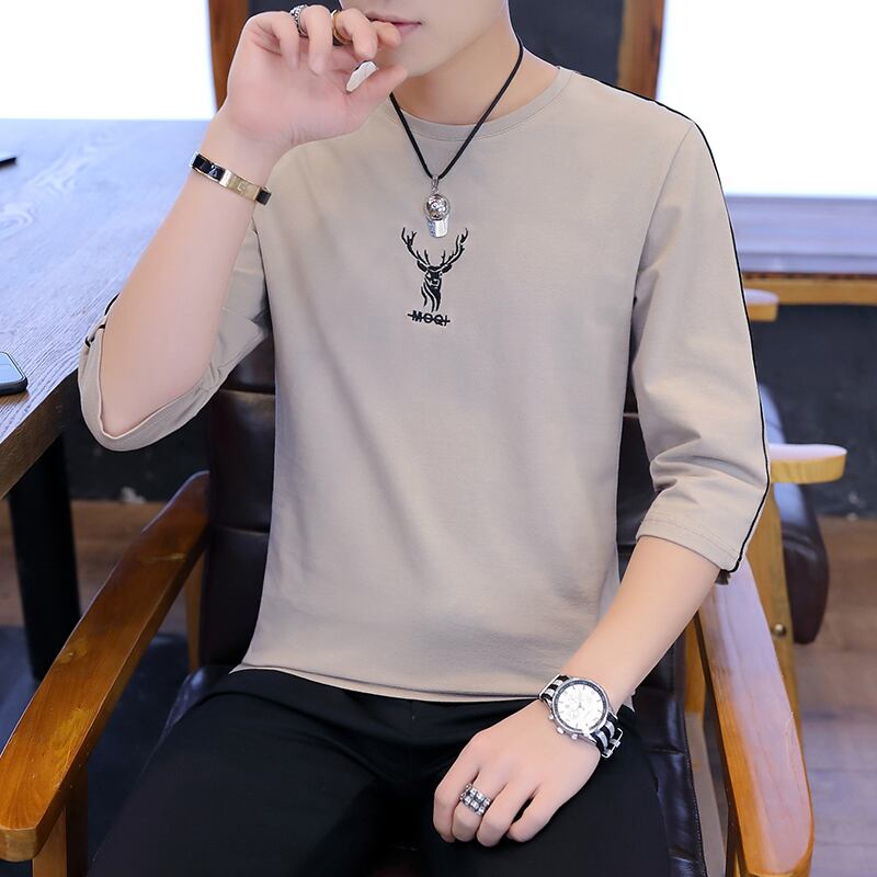 2022 summer three-quarter sleeve t-shirt men's version of the slim and handsome trend mid-sleeve bottoming shirt clothes 7-point short-sleeved men サマー 夏物 スリム Tシャツ doushi92057647027