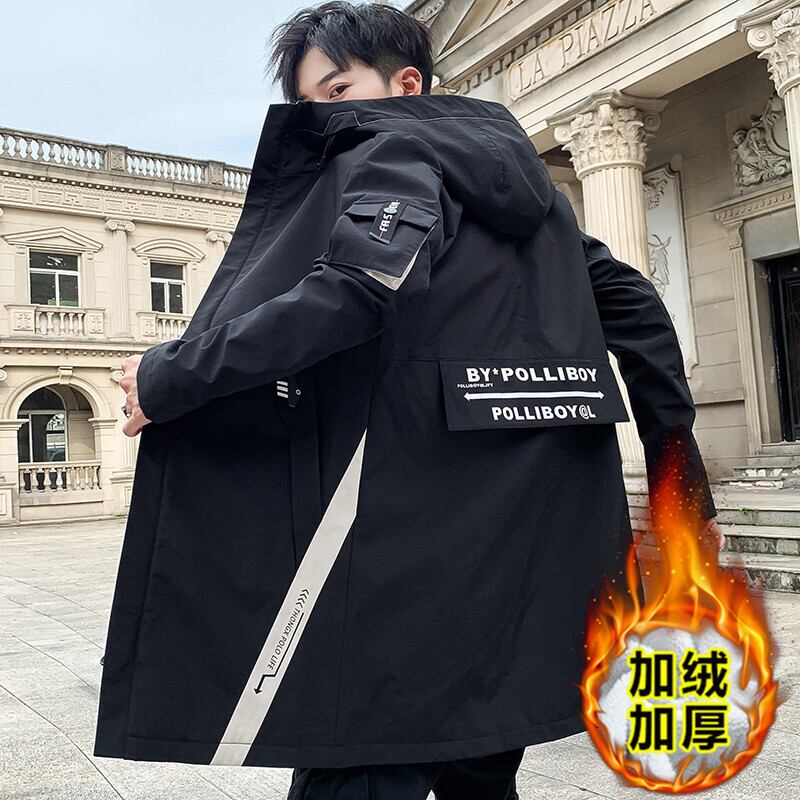 Jacket men's mid-length velvet thick coat 2022 new spring, autumn and winter version of the trendy ruffian handsome windbreaker スプリング 春物 オータム 秋物 ウィンター 冬物 doushi69313212733