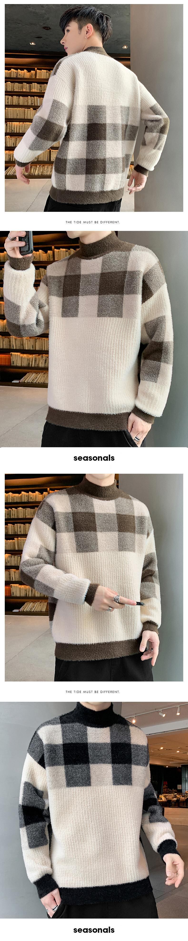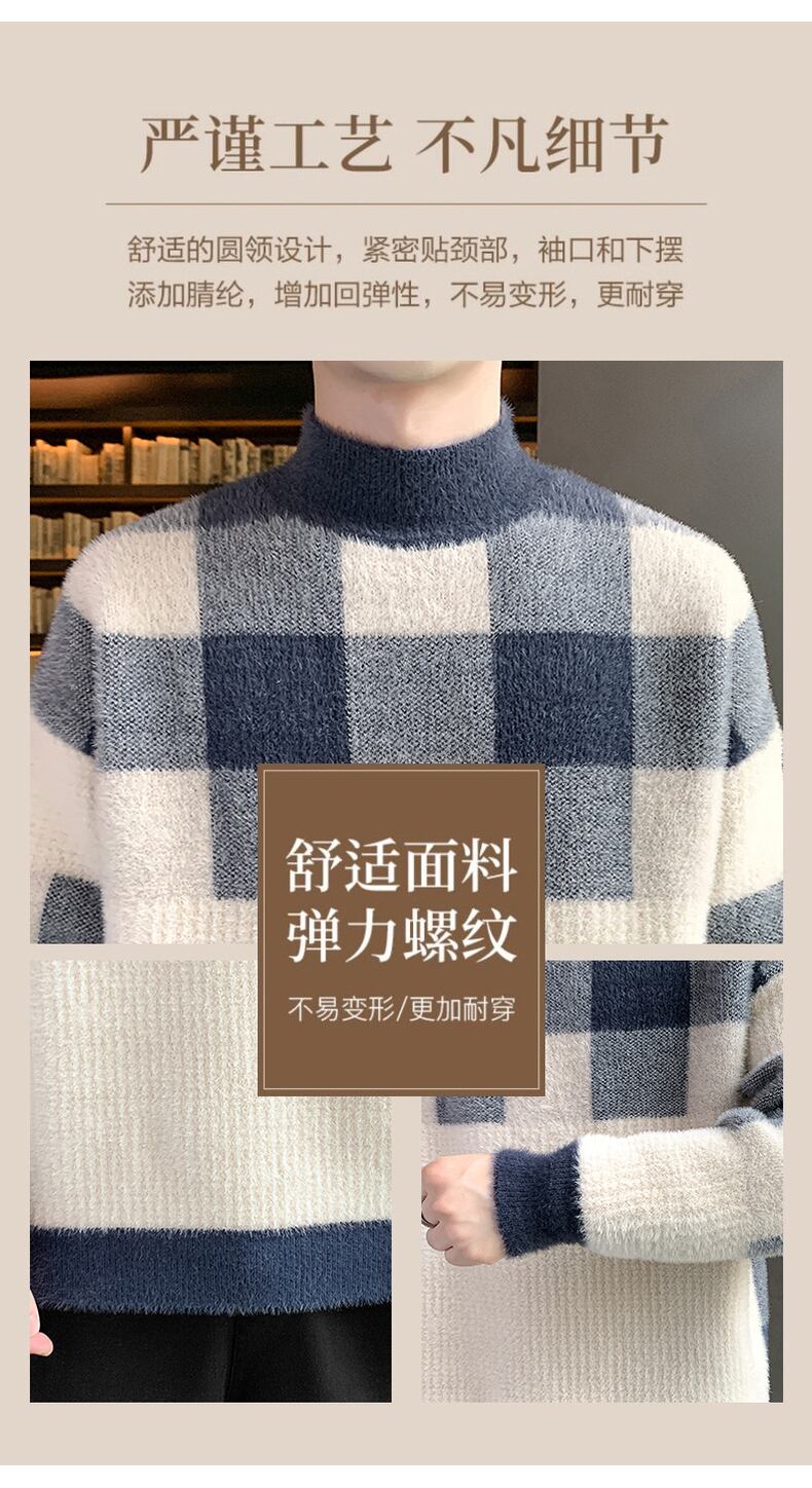 Tide brand autumn and winter plus velvet thick wool sweater half turtleneck bottoming sweater version Hong Kong style mink fleece sweater men オータム 秋物 ウィンター 冬物 doushi7596630718
