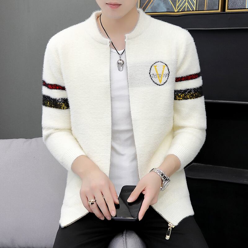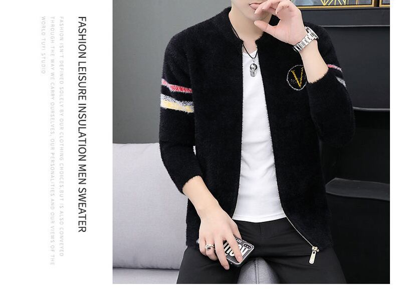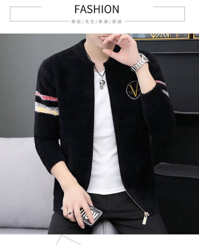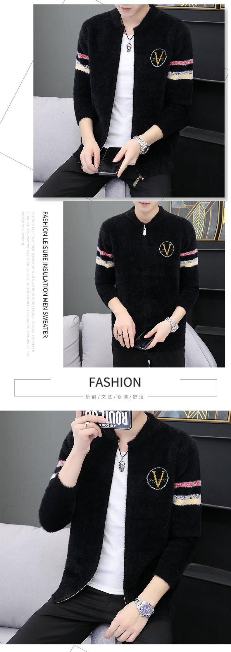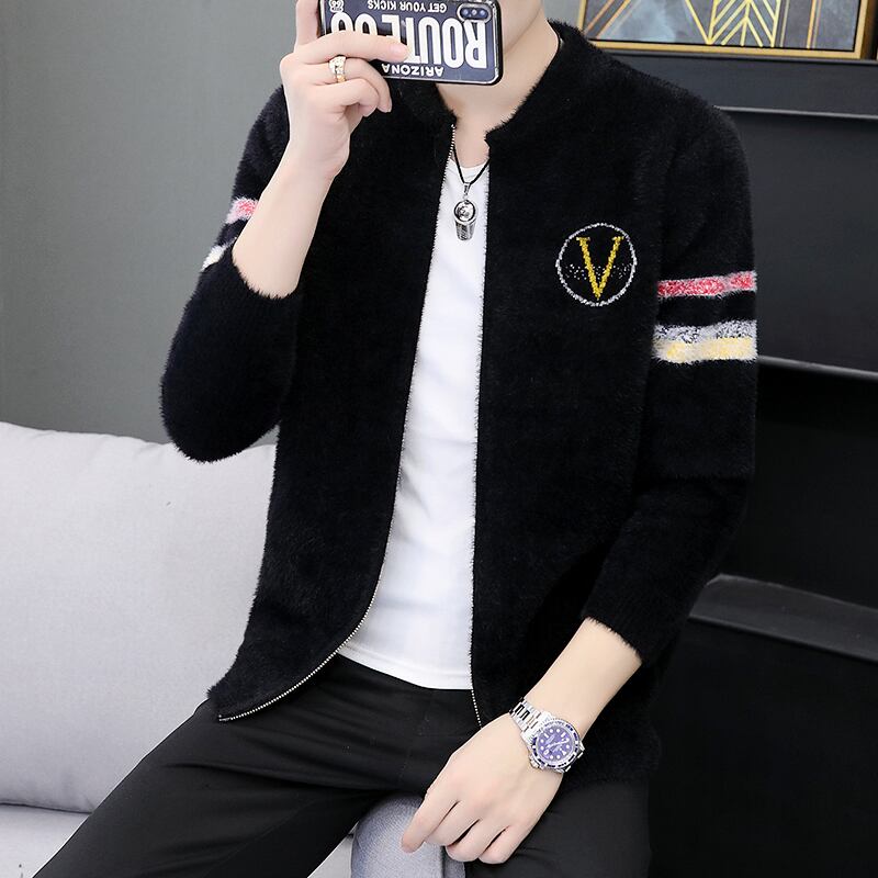 Spring and autumn thick sweater men's version personality imitation mink fleece jacket handsome cardigan tide knitted jacket baseball unim カーディガン スプリング 春物 オータム 秋物 doushi97941005451