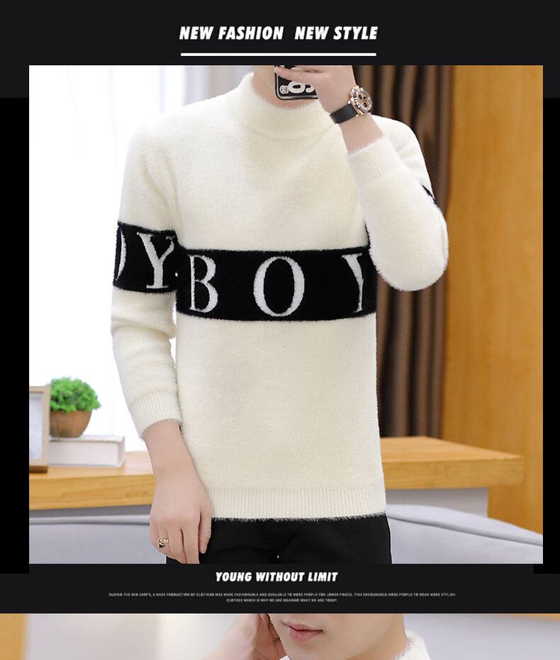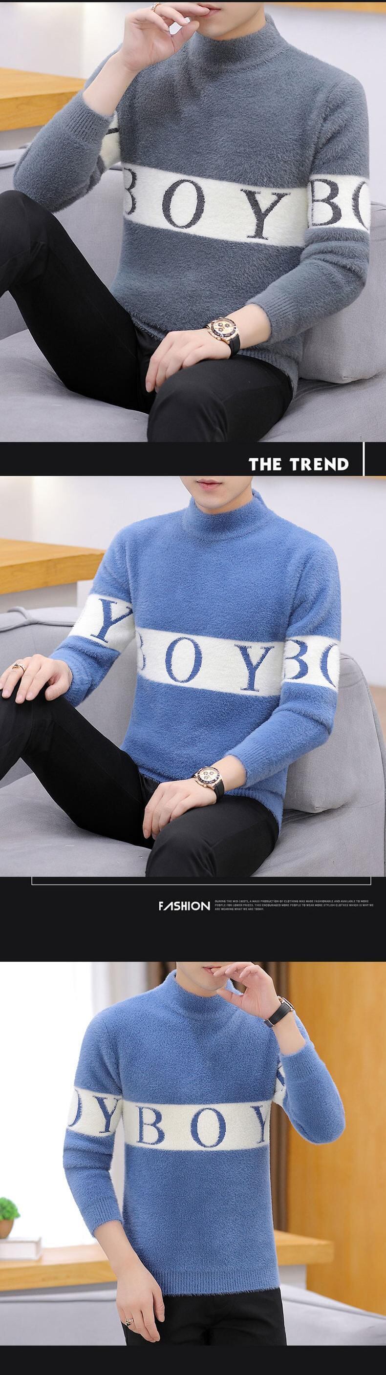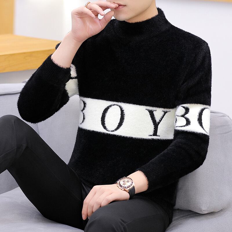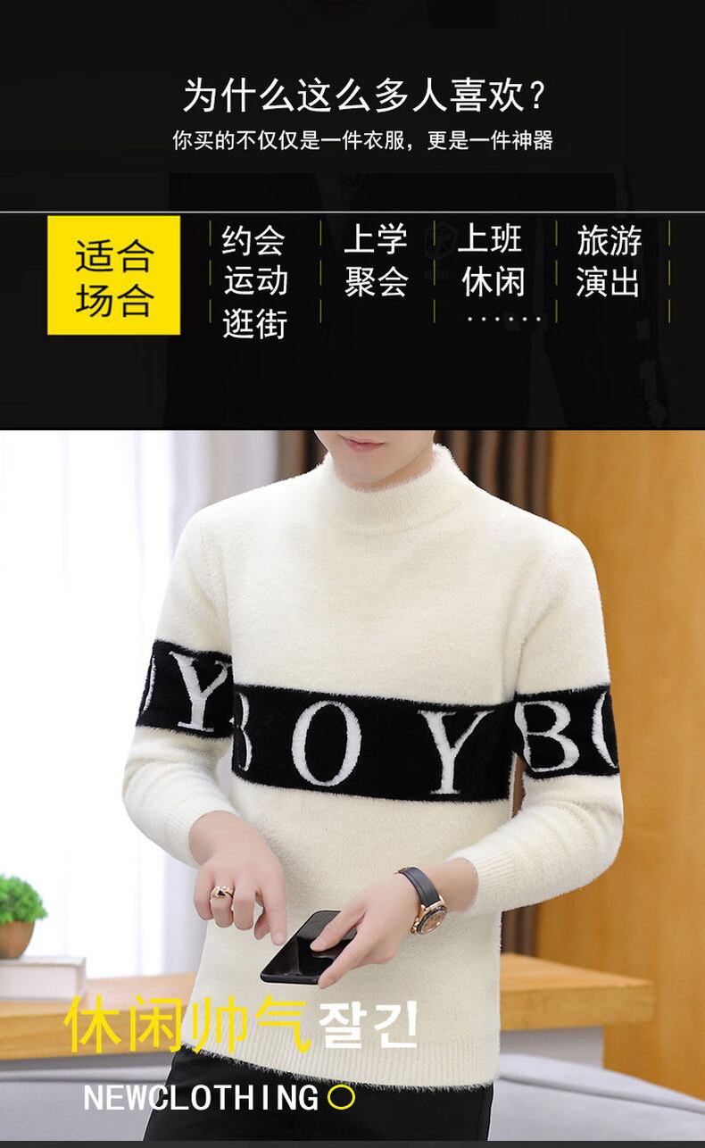 Autumn and winter half turtleneck mink fleece sweater men's knitted bottoming shirt trend plus velvet thick autumn clothes オータム 秋物 ウィンター 冬物 doushi51287760334