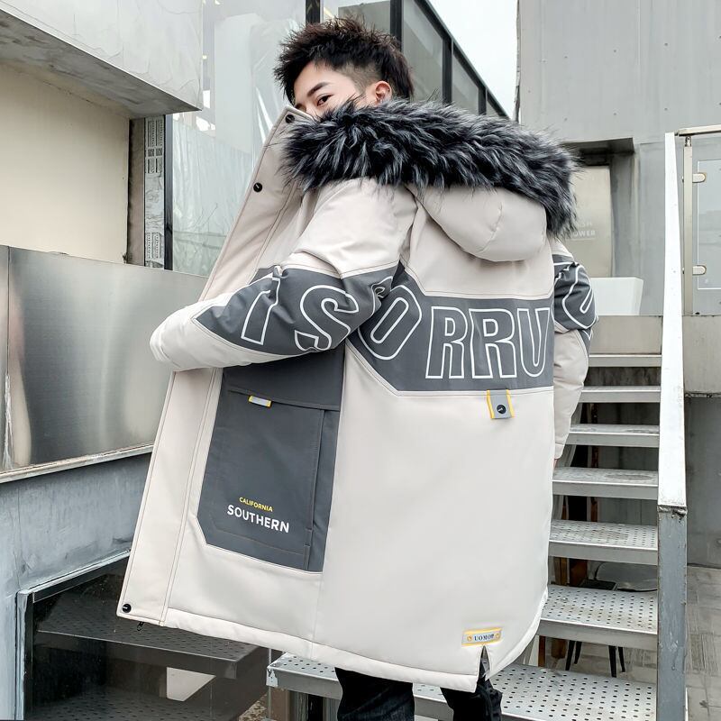Winter coat men's 2022 new version mid-length tide brand cotton clothing tooling cotton jacket fur collar down cotton coat men's コットン ウィンター 冬物 doushi84367840560
