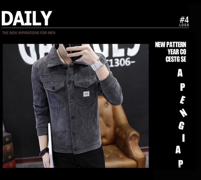 Tide brand autumn and winter style plus velvet jacket men's trend loose corduroy denim jacket outer wear lapel tooling clothes オータム 秋物 ウィンター 冬物 doushi76575490587