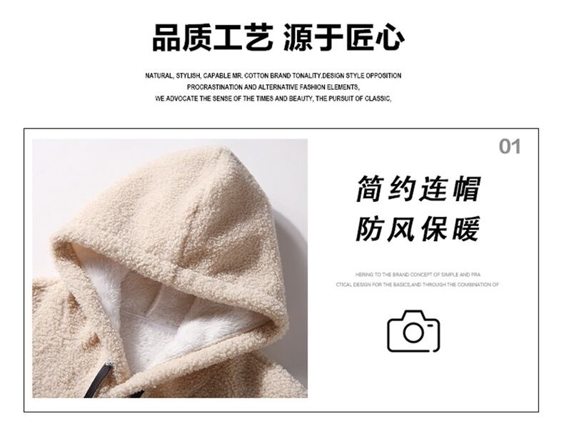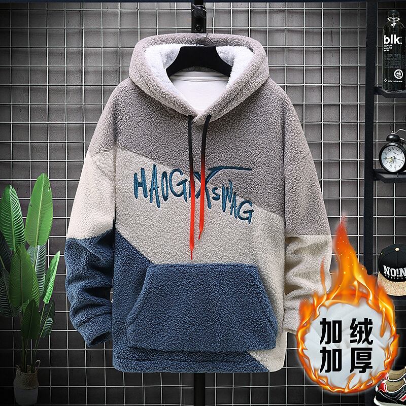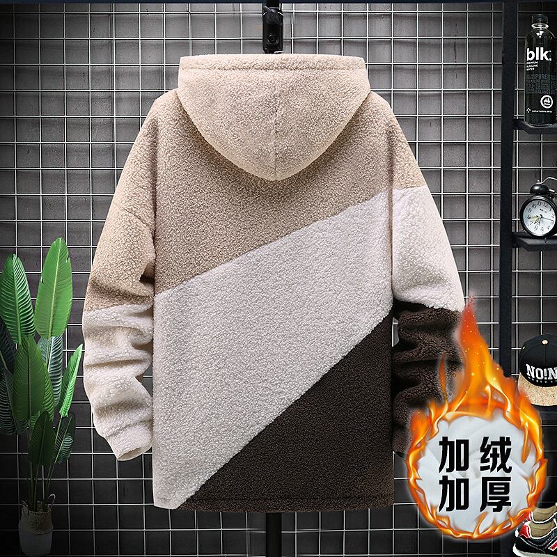 Lamb velvet sweater men's autumn and winter plus velvet thickening 2022 new color matching spring and autumn students hooded grain velvet jacket スプリング 春物 オータム 秋物 ウィンター 冬物 doushi91969326227