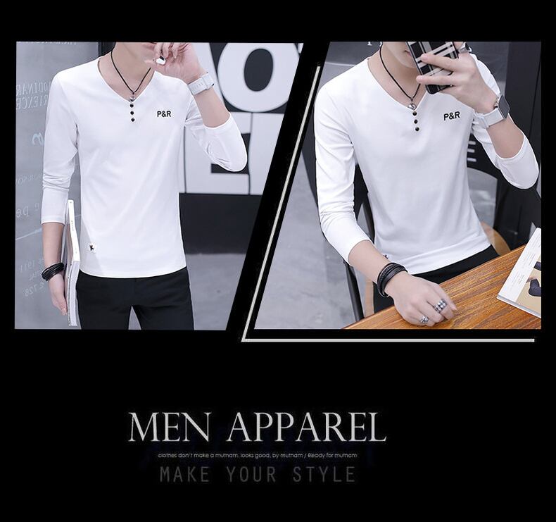 Men's V-neck long-sleeved t-shirt 2022 new spring, autumn and summer bottoming shirt trend tide brand casual men's top t-shirt ロング カジュアル スプリング 春物 サマー 夏物 オータム 秋物 Vネック Tシャツ doushi69847768259