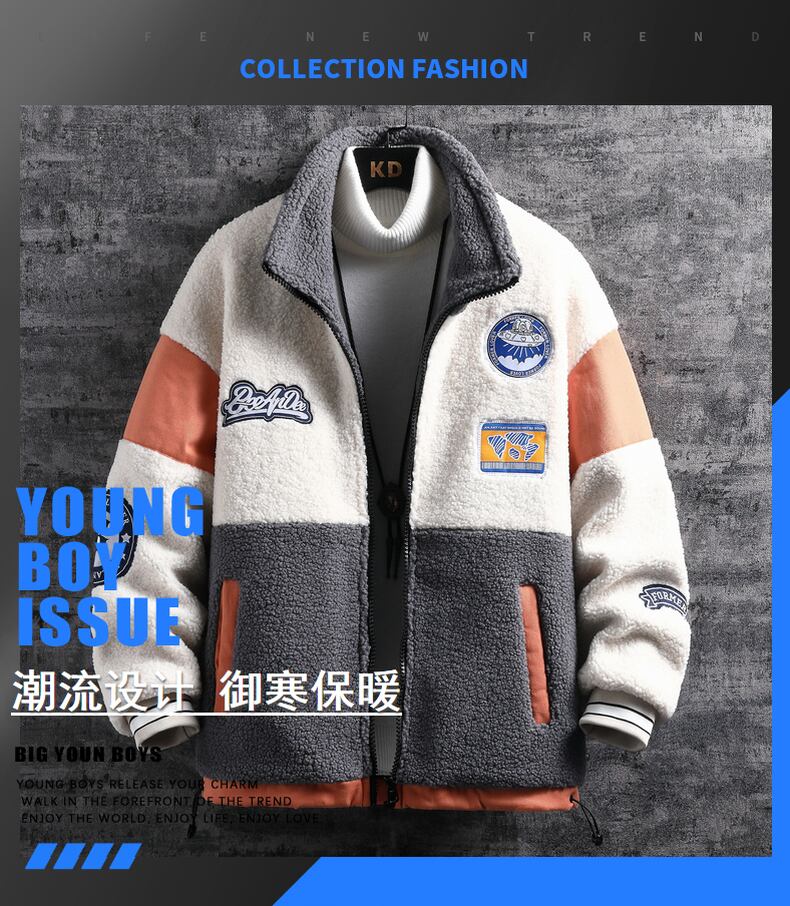 Lamb Plush Jacket Men's Cotton Thickening Autumn and Winter Fleece Jacket Cotton Clothes Youth Men's コットン オータム 秋物 ウィンター 冬物 doushi45705974386