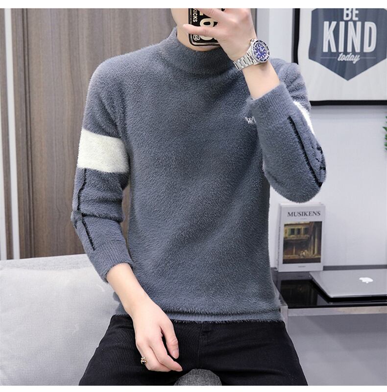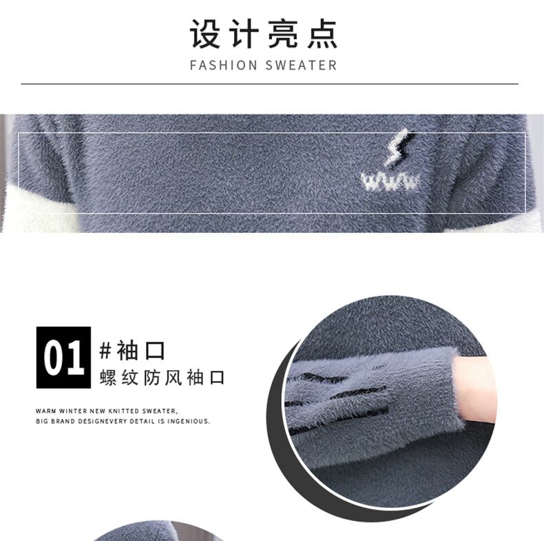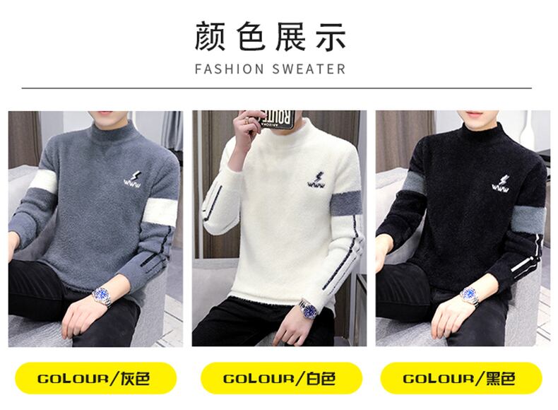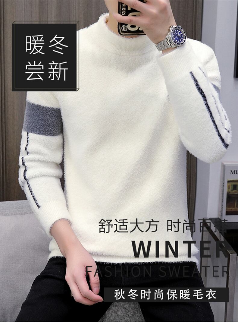 Half turtleneck mink fleece sweater men's autumn and winter plus velvet thickening bottoming shirt trendy sweater warm autumn tops オータム 秋物 ウィンター 冬物 doushi38604831143
