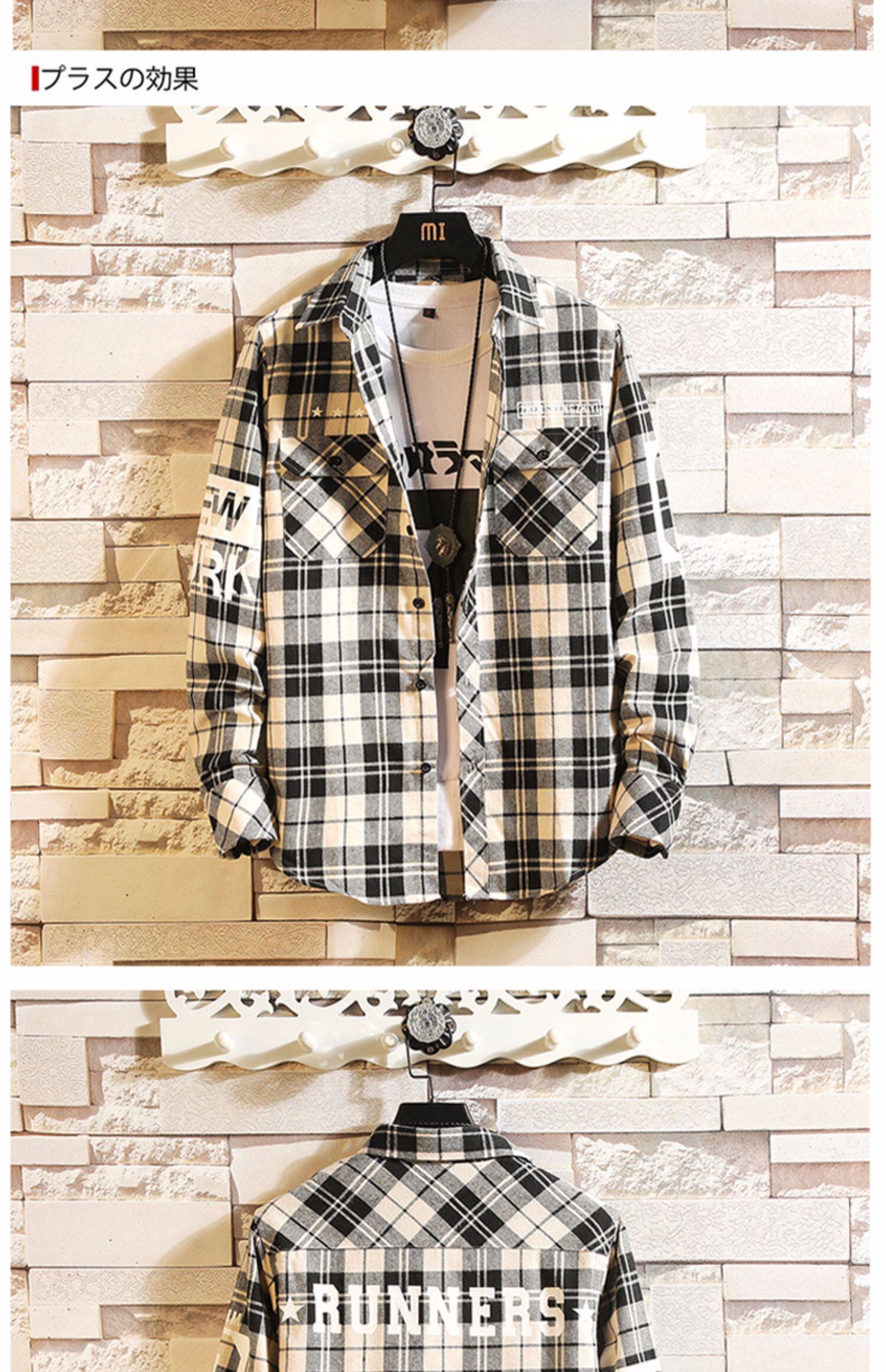 Plaid shirt men's long-sleeved version ins spring trend thin section handsome casual shirt coat Hong Kong style inch shirt ロング カジュアル スプリング 春物 doushi14424761803