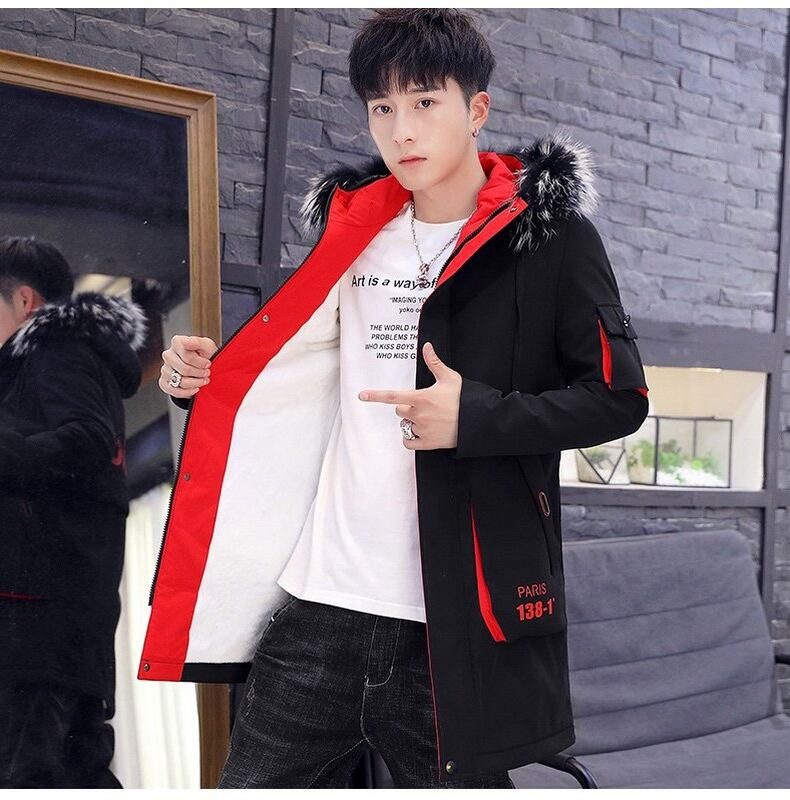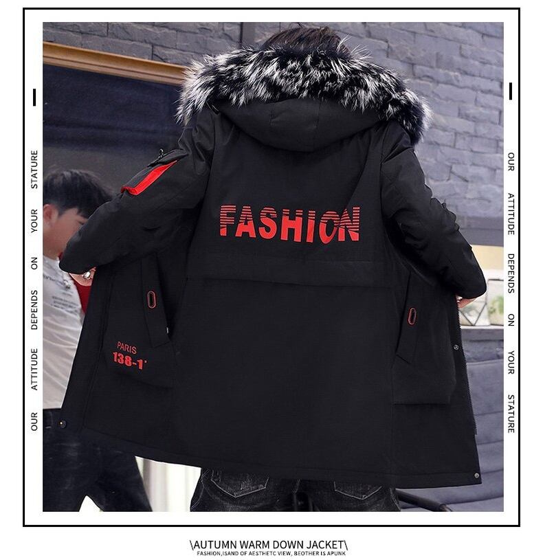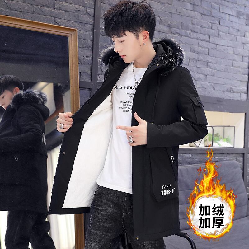 Tooling cotton clothing men's trendy ins2022 winter mid-length thickening warm large fur collar down cotton coat casual jacket コットン カジュアル ウィンター 冬物 doushi22895230356