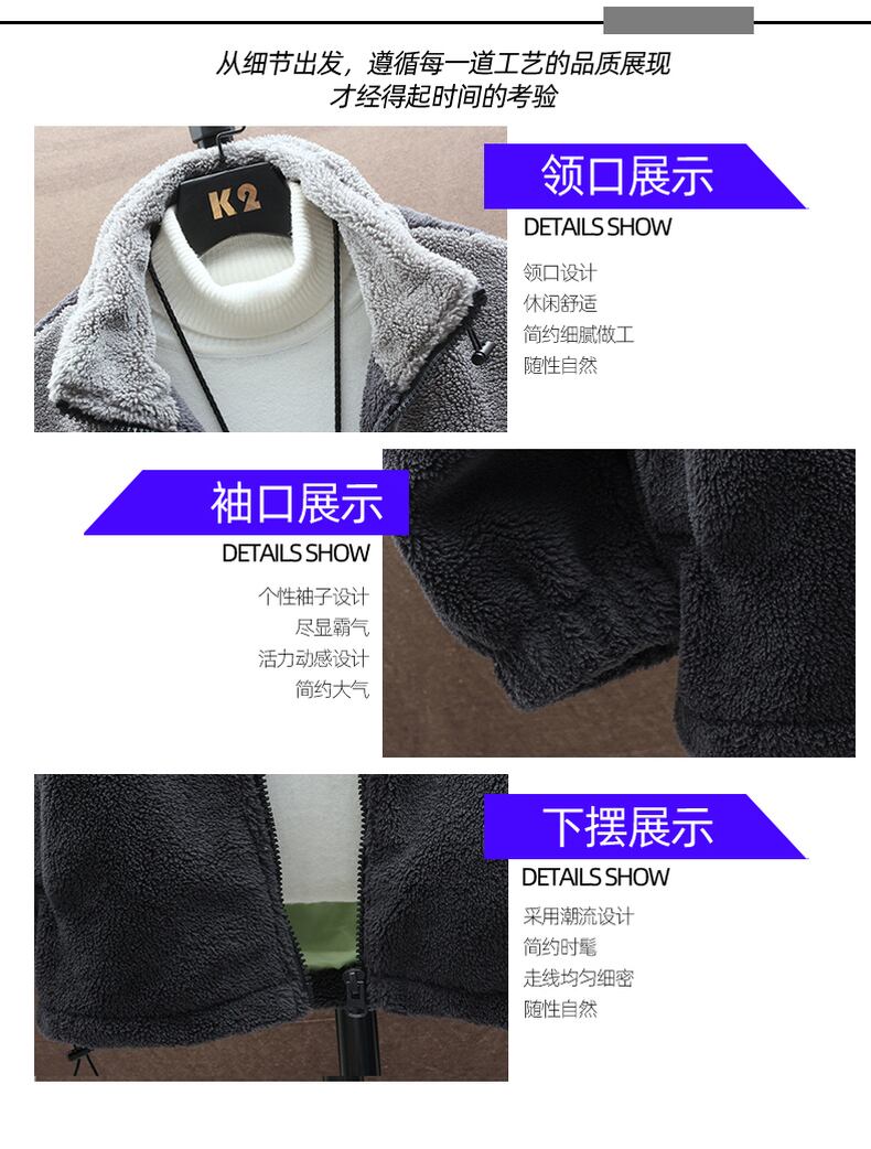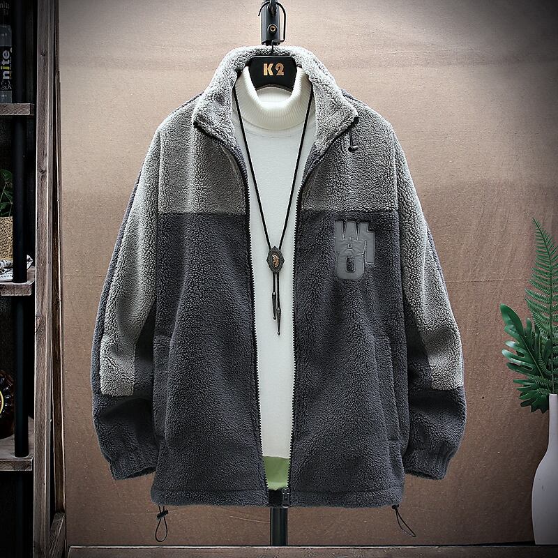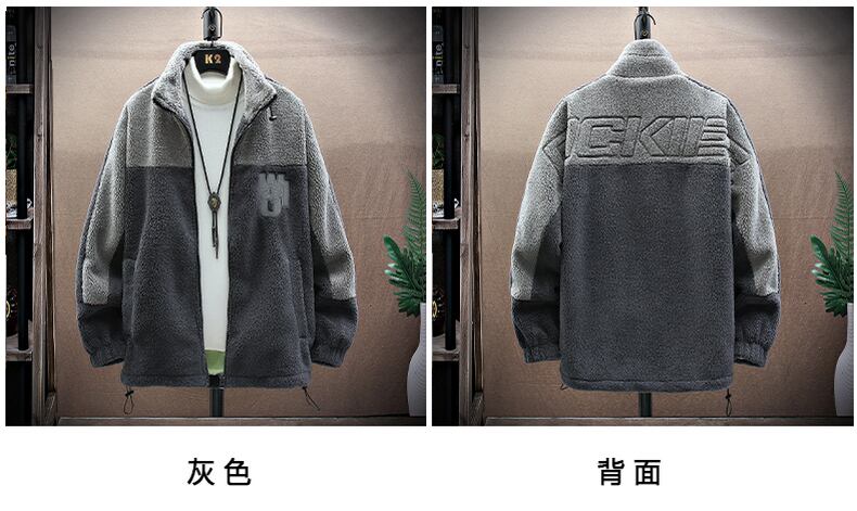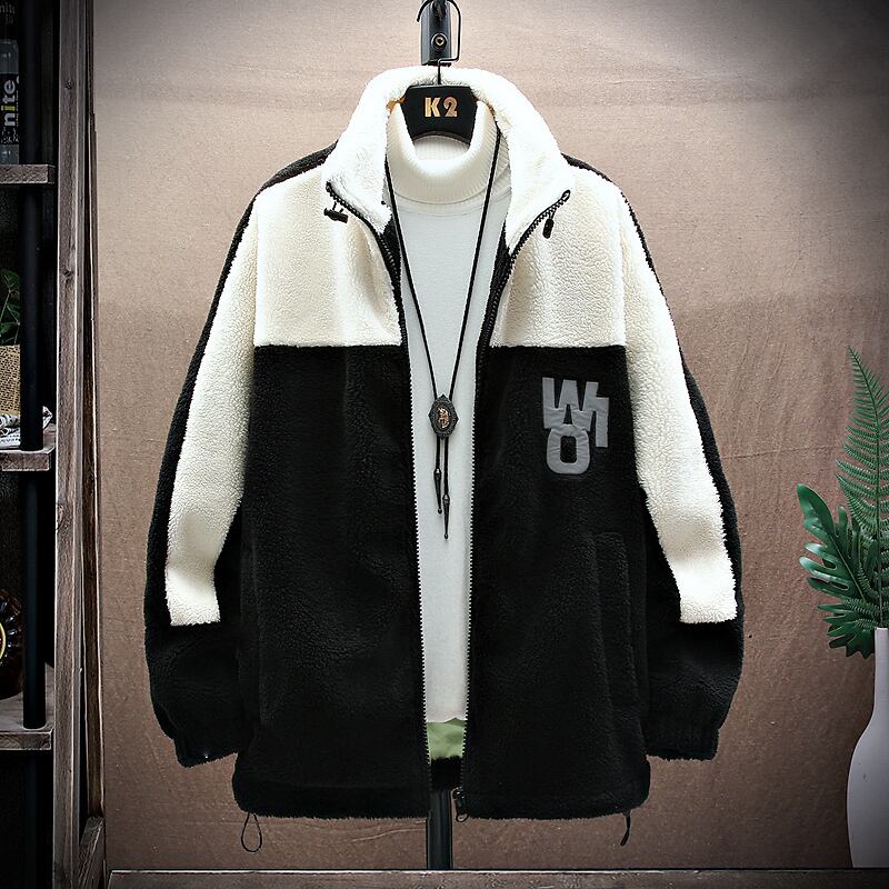 Lamb velvet jacket men's winter new stand collar color matching plus velvet thick winter jacket boys warm top trend ウィンター 冬物 doushi19100507934