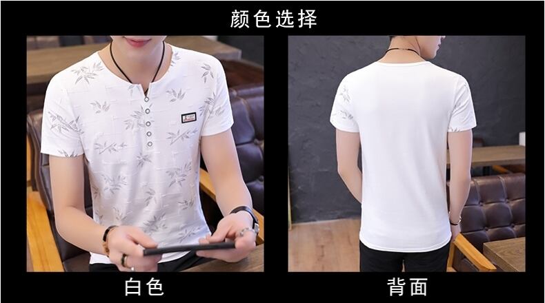 Short-sleeved T-shirt men's summer V-neck version slim trend white bottoming shirt 丅桖 top clothes cotton men's half sleeves ホワイト コットン 半袖 ハーフスリーブ サマー 夏物 Vネック スリム Tシャツ doushi89069026374