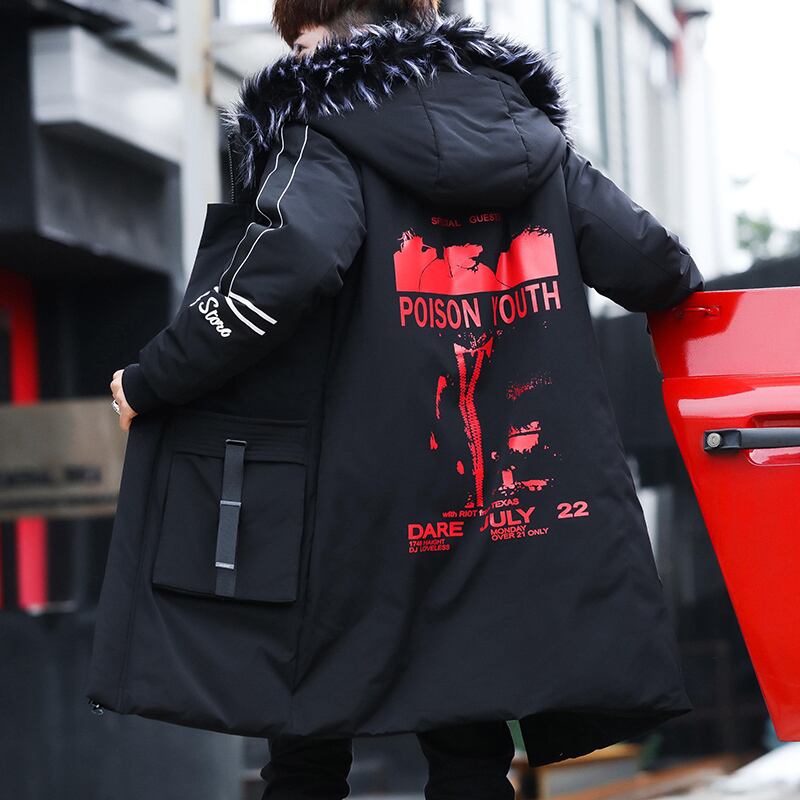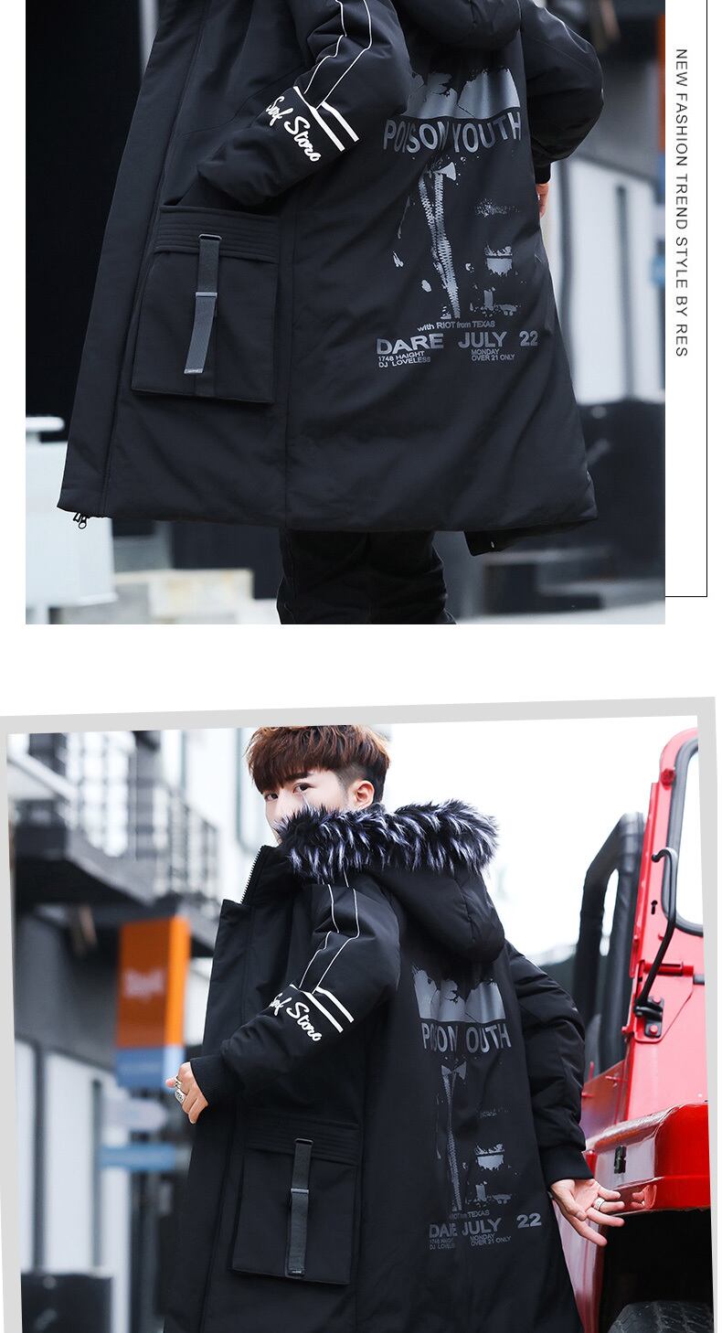 Men's jacket autumn and winter 2022 new youth version of the trend of cotton clothes in the long section plus velvet thick windbreaker ロング コットン オータム 秋物 ウィンター 冬物 doushi25401706562