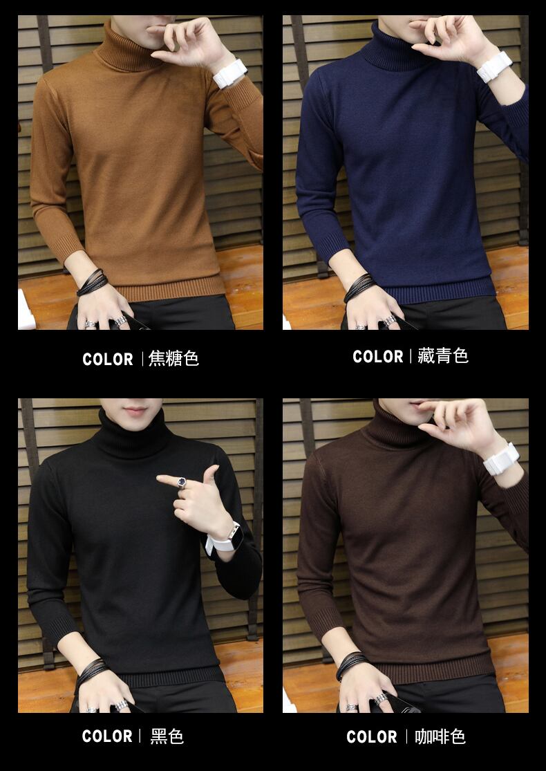 Winter trend men's turtleneck knitted sweater thickened long-sleeved T-shirt version fleece clothes winter bottoming shirt autumn ロング オータム 秋物 ウィンター 冬物 Tシャツ doushi79431140277