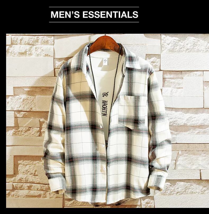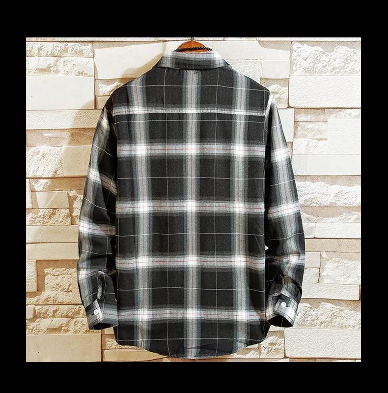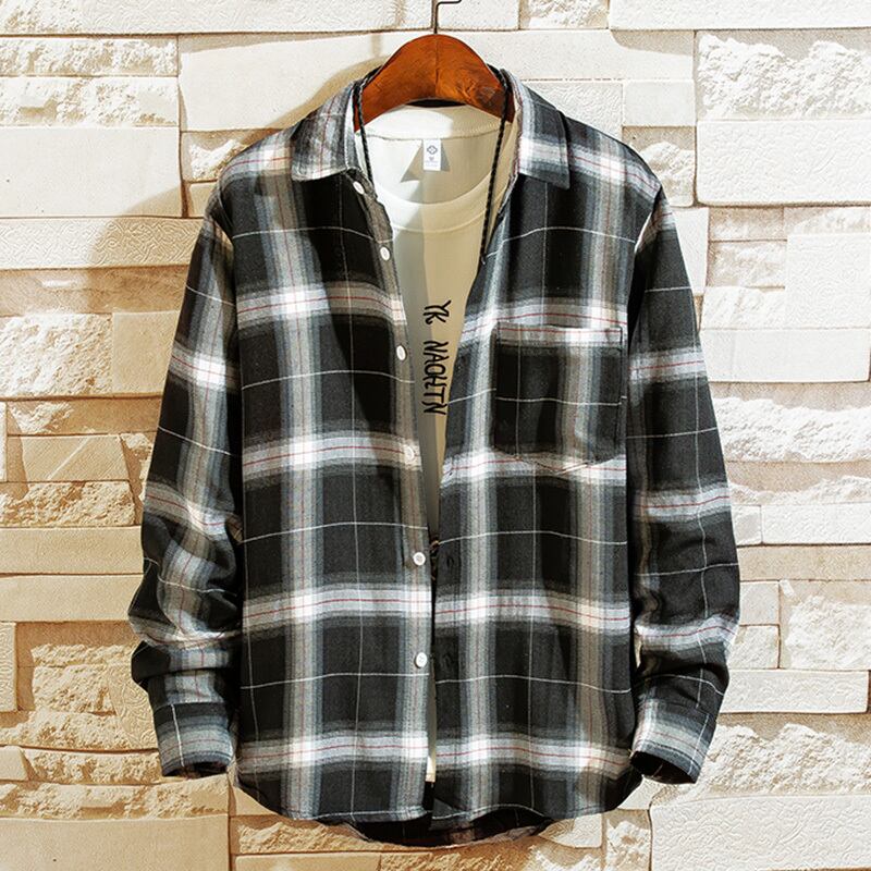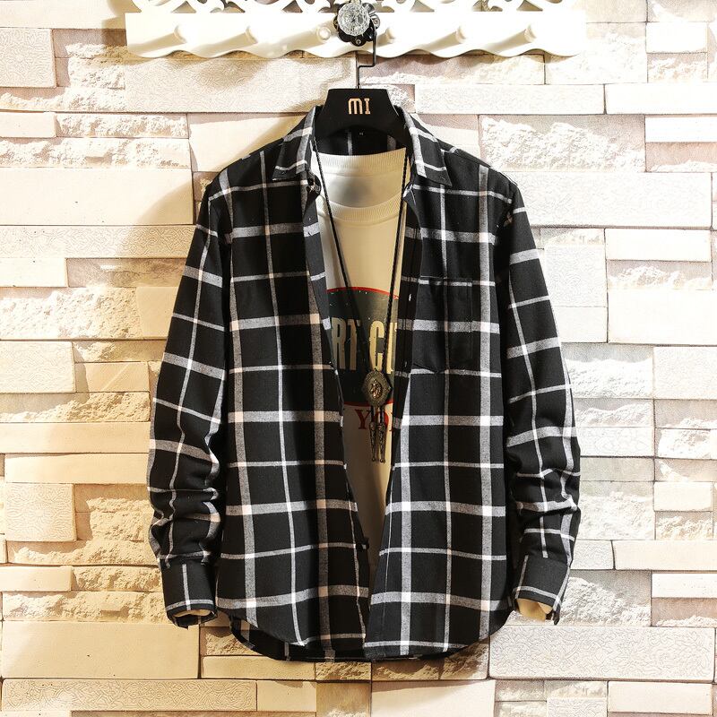 Men's plaid shirt spring handsome Hong Kong style white shirt version trend personality long-sleeved inch shirt top clothes coat ロング ホワイト スプリング 春物 doushi48859755084