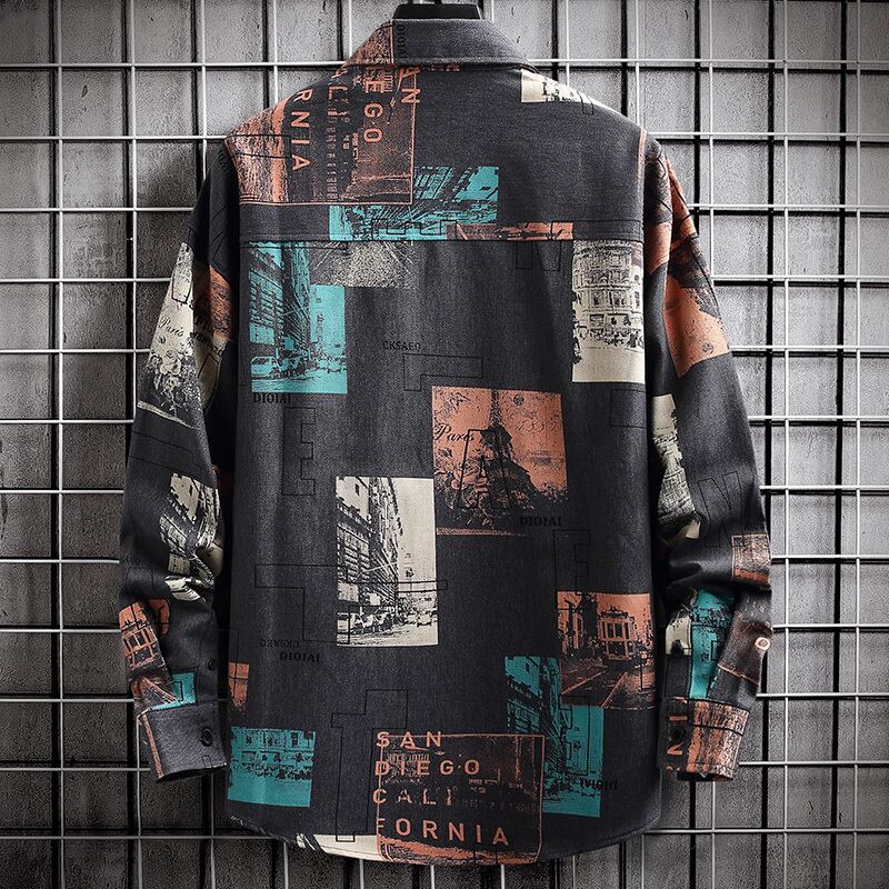 long-sleeved shirt men's 2022 new trendy brand Hong Kong style men's ruffian handsome shirt thin coat top clothes ロング doushi82036550274