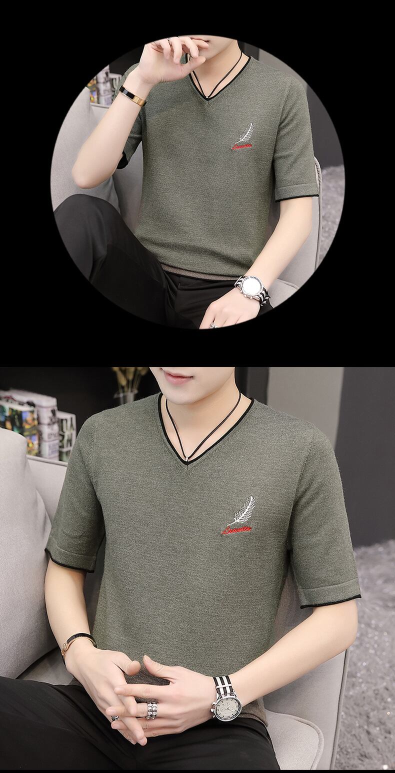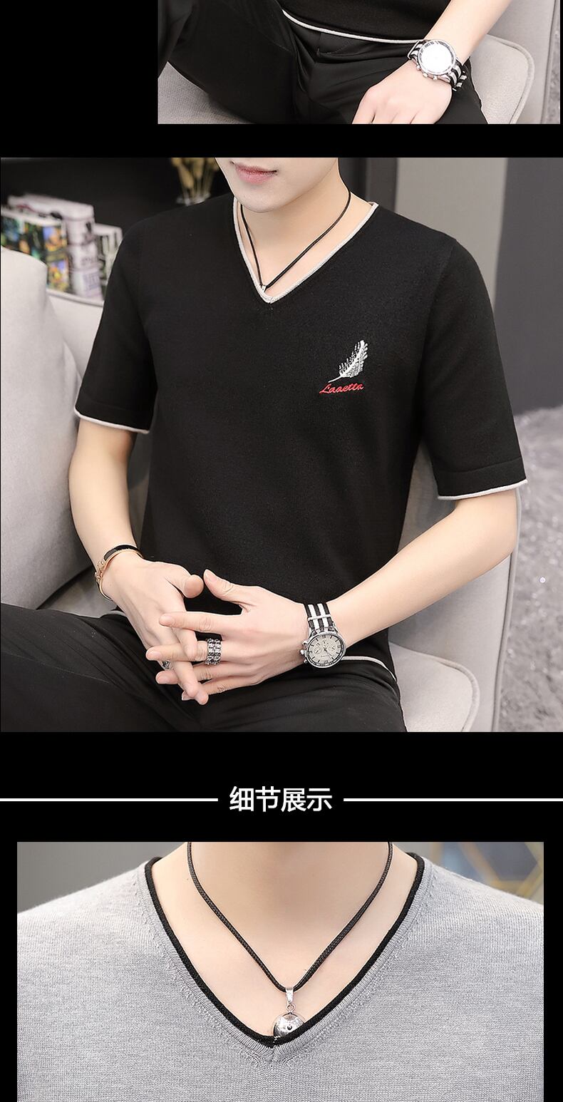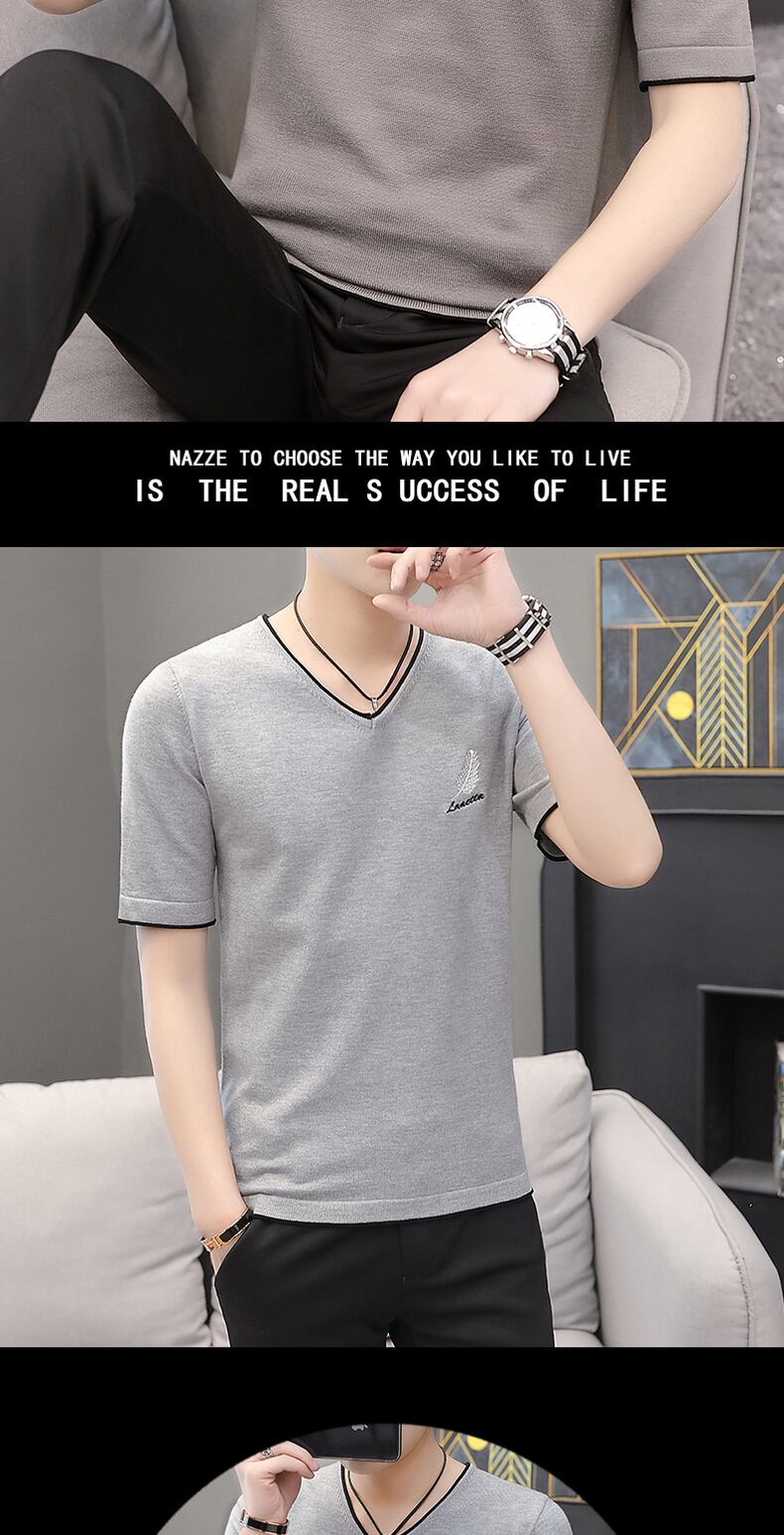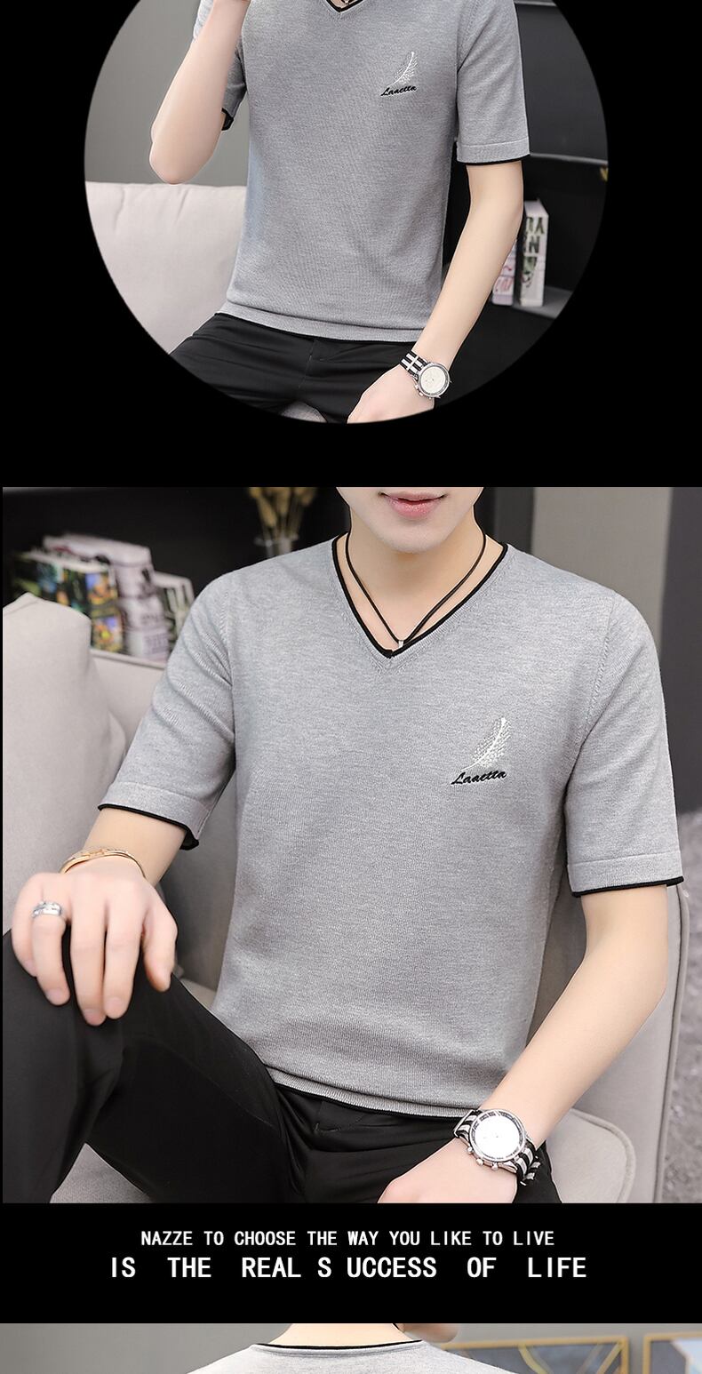 2022 spring and autumn short-sleeved knitted sweater men's t-shirt version slim V-neck body tuck youth sweater half-sleeve top clothes スプリング 春物 オータム 秋物 Vネック スリム Tシャツ doushi94299544284