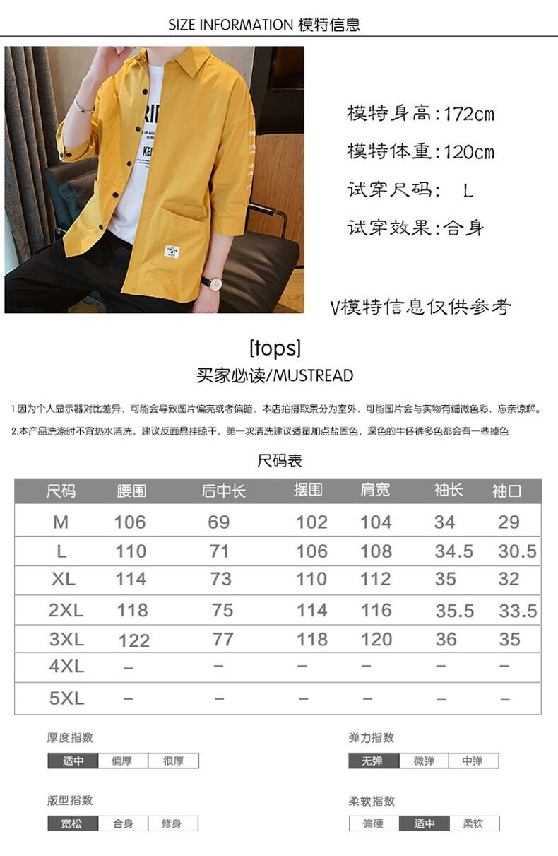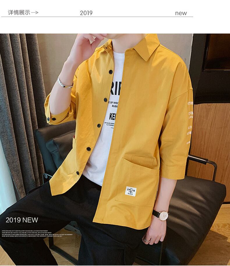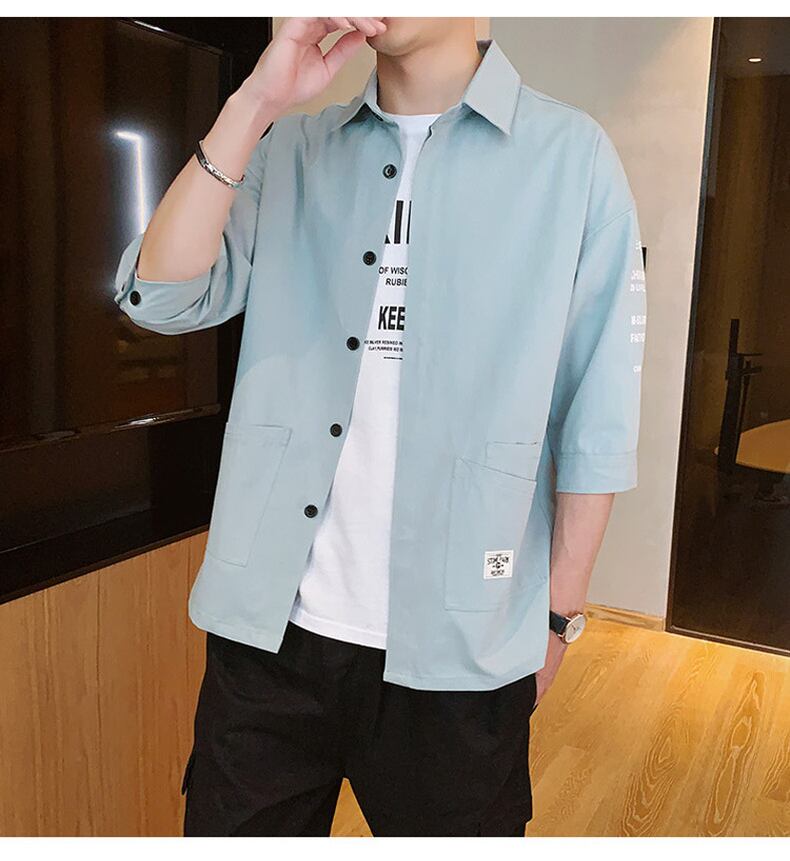 Men's version of the loose short-sleeved shirt trend summer all-match handsome casual jacket three-quarter sleeve work clothes カジュアル サマー 夏物 doushi92021810559
