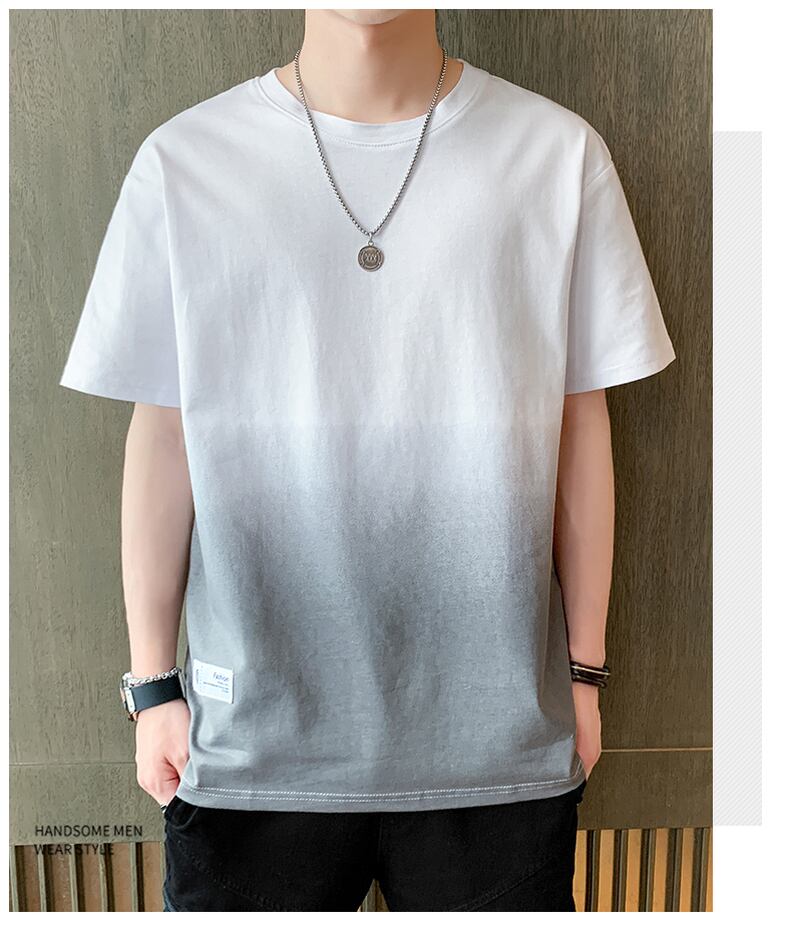 Tide brand short-sleeved t-shirt men's gradient color version trend men's cotton casual loose top ins half-sleeve top clothes コットン カジュアル Tシャツ doushi36422666998