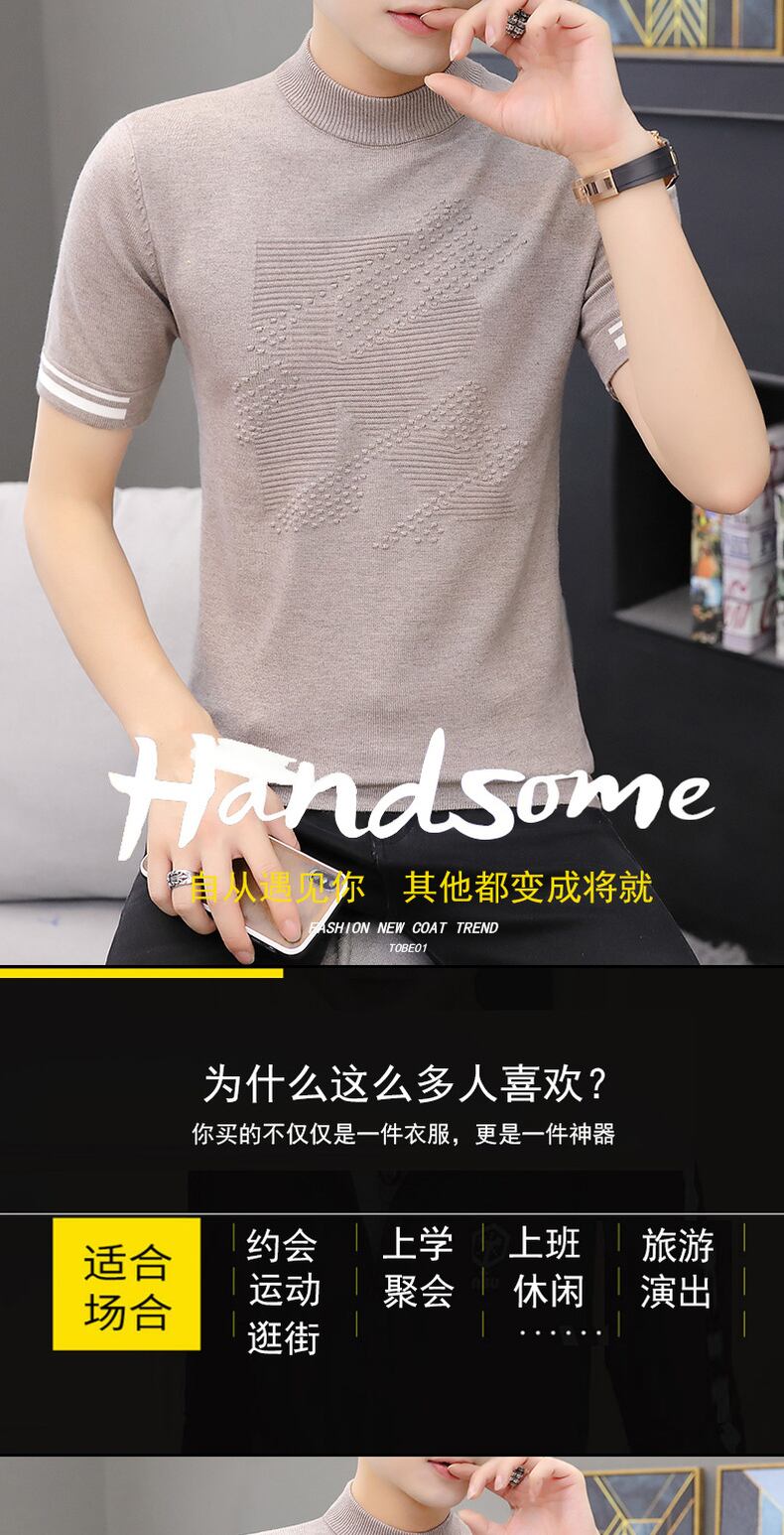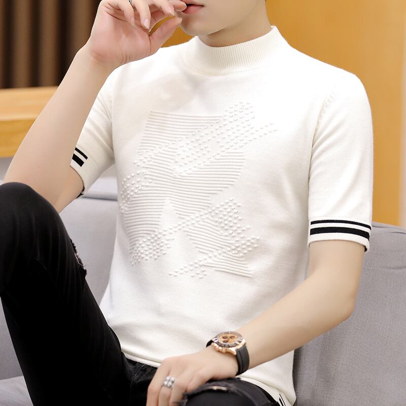 Spring short-sleeved T-shirt men's trend men's bottoming sweater spring white sweater half-sleeve top clothes trendy ホワイト スプリング 春物 Tシャツ doushi87687740528