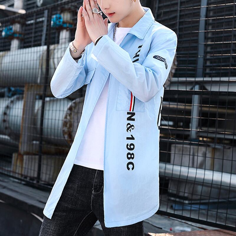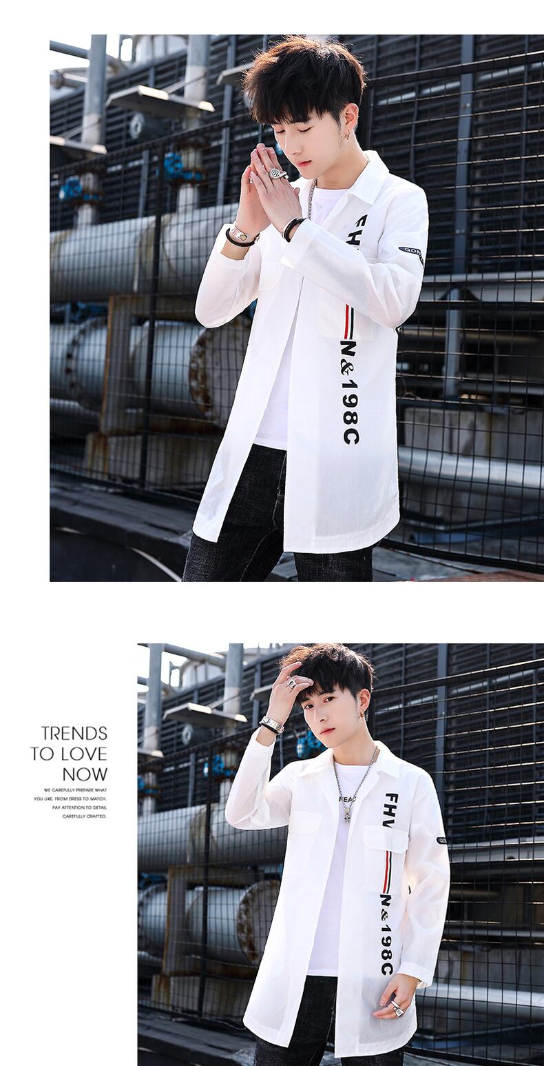 Spring and summer mid-length shirts men's trendy lightweight breathable sunscreen clothes ruffian handsome ice silk long-sleeved shirts jacket ロング シャツ スプリング 春物 サマー 夏物 シルク doushi69014397404