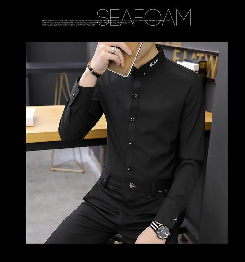 Spring and autumn new shirt men's long-sleeved version anti-wrinkle non-iron black shirt men's handsome slim fit elastic inch shirt ロング ブラック エラスティック 伸縮 スプリング 春物 オータム 秋物 スリム doushi39240399369