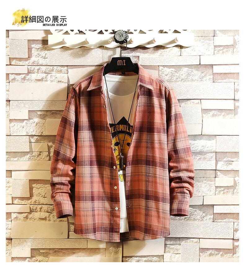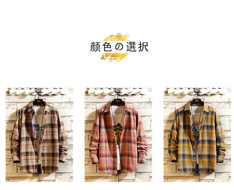 Tide brand plaid long-sleeved shirt men's spring version trend loose all-match casual jacket spring and autumn cotton shirt men ロング コットン カジュアル スプリング 春物 オータム 秋物 doushi65969944554