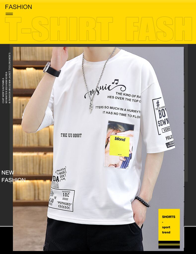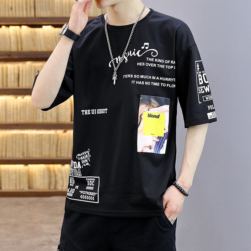 Summer clothes, trendy men's tops, T-shirts, short-sleeved Hong Kong fashion brand Ice Silk 2022 spring and summer half sleeves 半袖 ハーフスリーブ シャツ スプリング 春物 サマー 夏物 シルク Tシャツ doushi27481287713