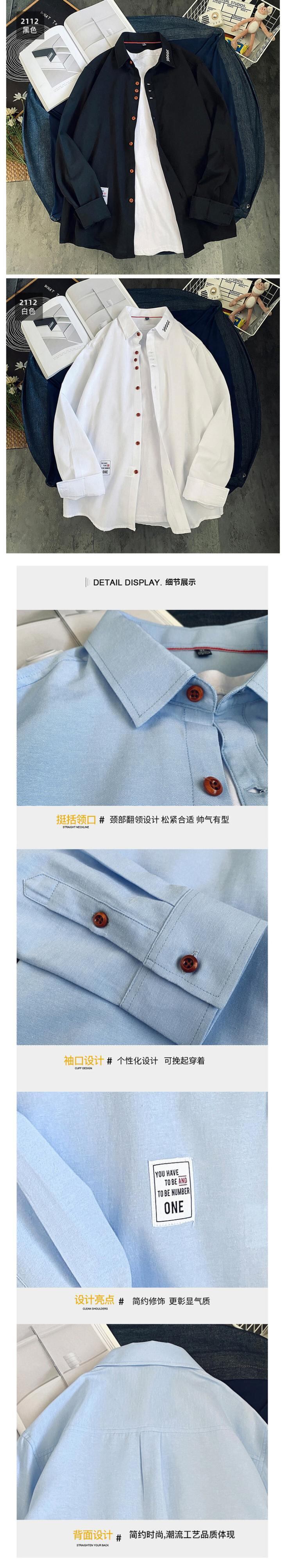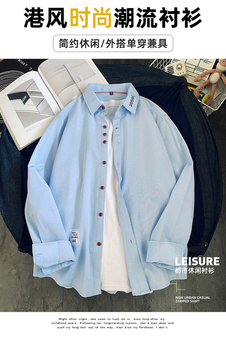 Shirt men's long-sleeved Hong Kong style trend inch shirt student casual spring shirt spring thin coat youth shirt tide ロング カジュアル スプリング 春物 doushi37309129862