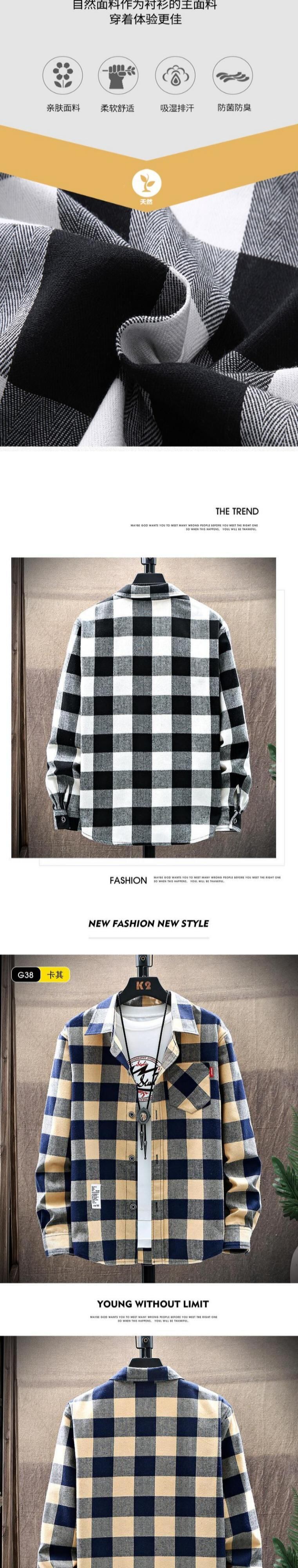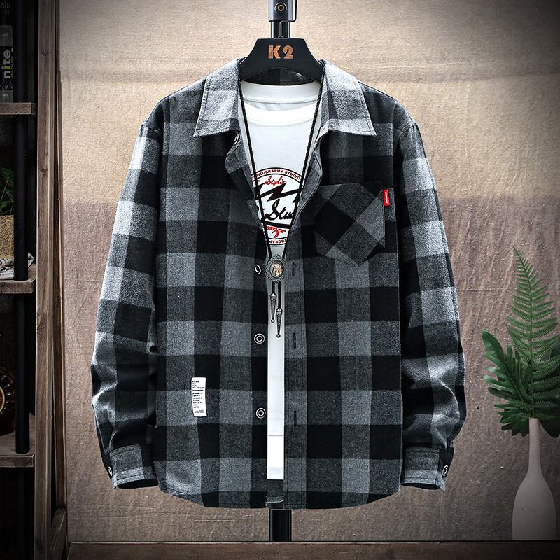 Plaid shirt men's spring and autumn 2022 new coat high-end trendy brand men's inner tooling shirt size スプリング 春物 オータム 秋物 doushi19329464529