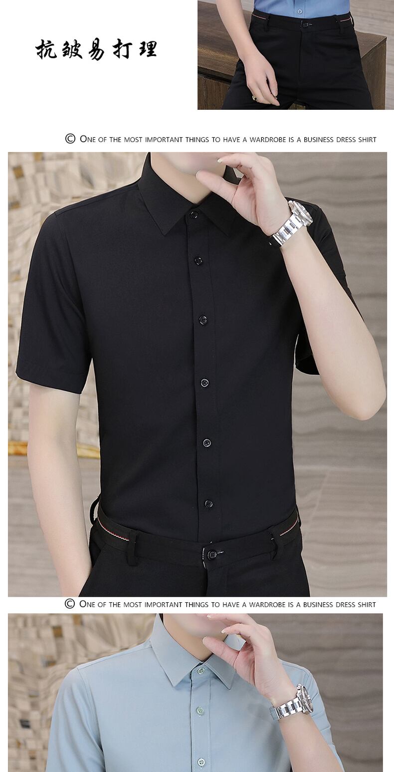 Blue shirt men's short-sleeved version business iron-free shirt summer men's solid color professional mal inch shirt overalls ブルー サマー 夏物 ソリッドカラー doushi41245079159