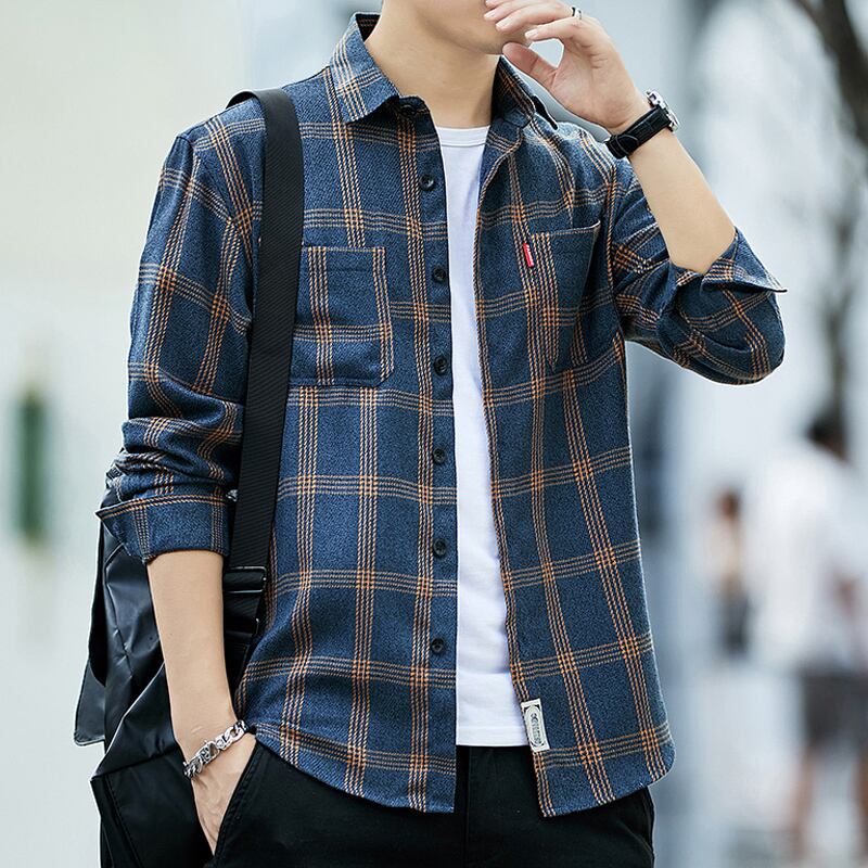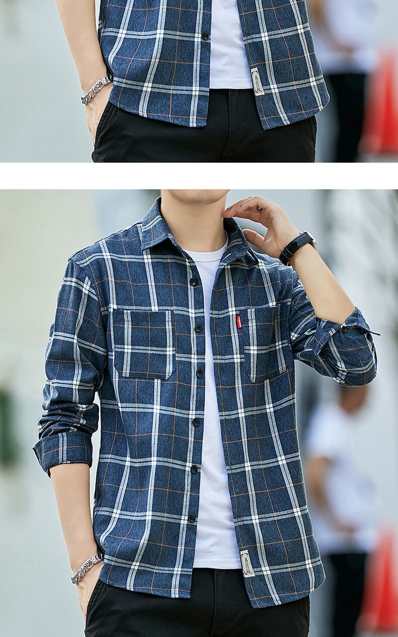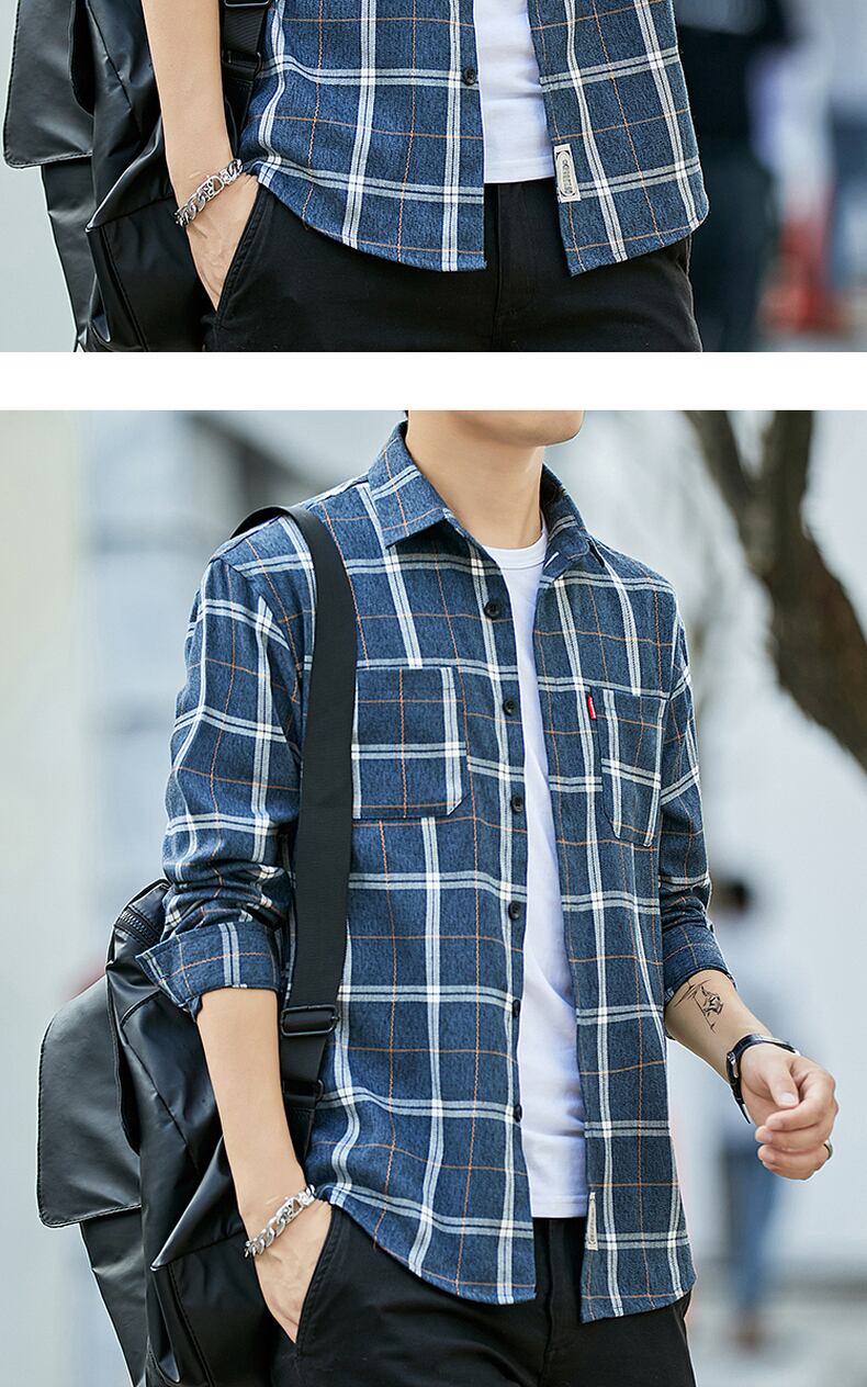 Plaid shirt men's long-sleeved spring and autumn outer wear loose trend shirt loose thin casual jacket men's top ロング カジュアル スプリング 春物 オータム 秋物 doushi59213158320