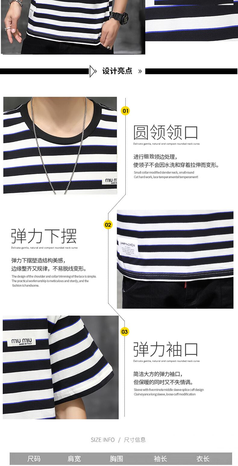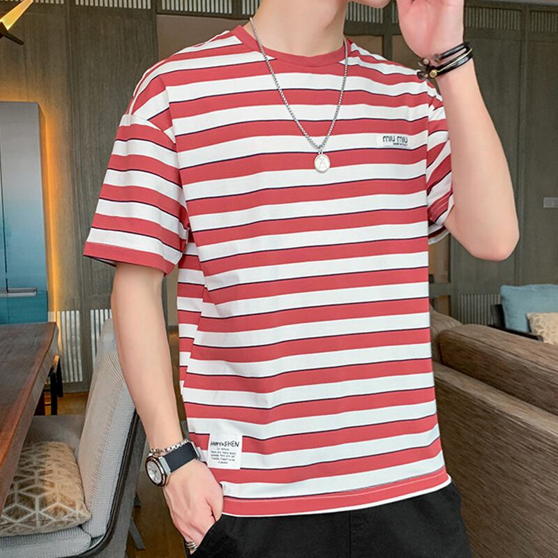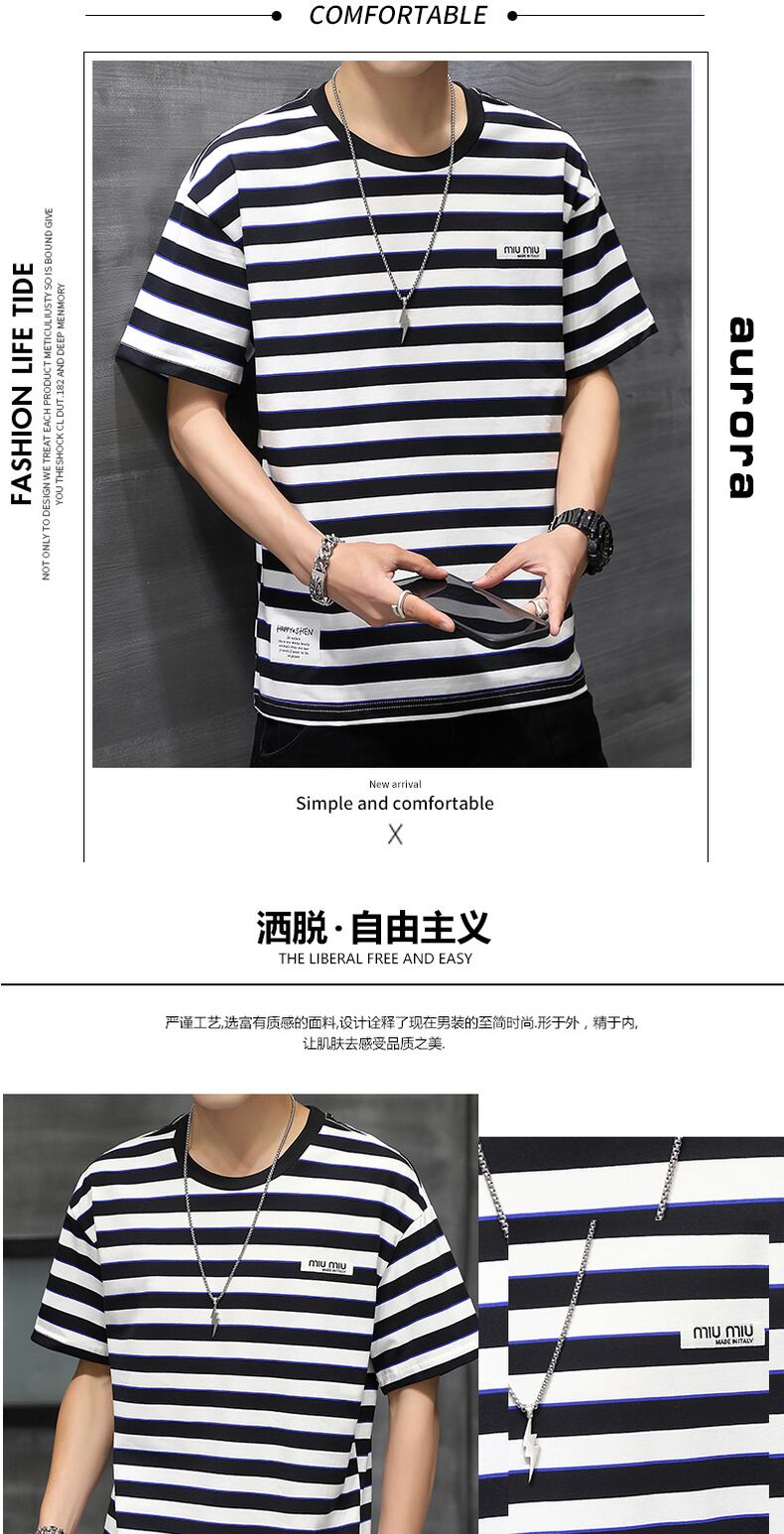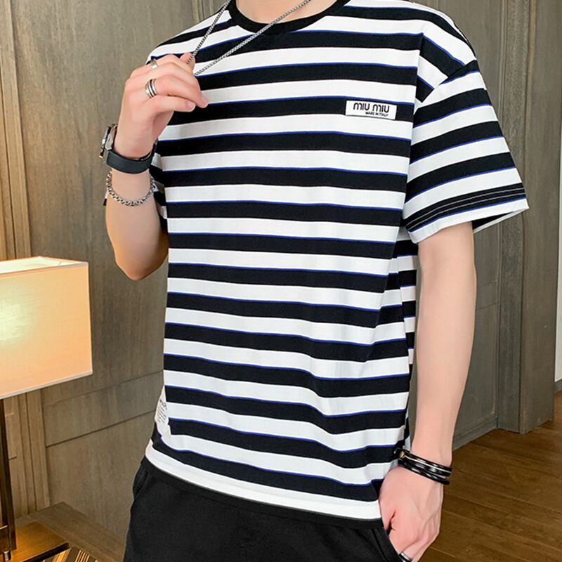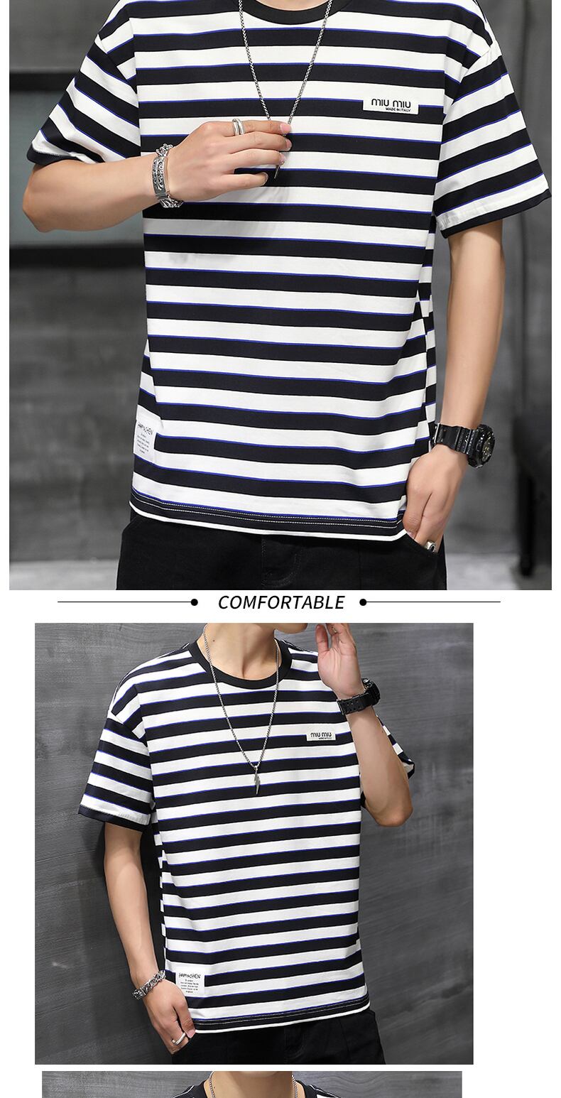 Striped t-shirt men's short-sleeved 2022 new trendy brand cotton men's loose half-sleeved t-shirt trend summer clothes コットン サマー 夏物 ストライプ Tシャツ doushi73327929864