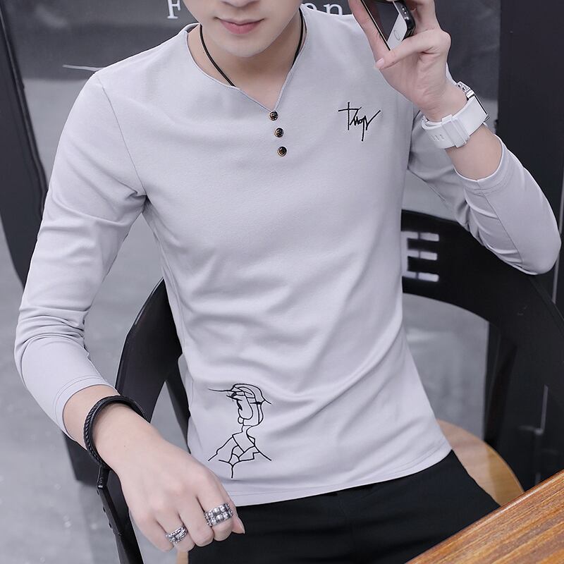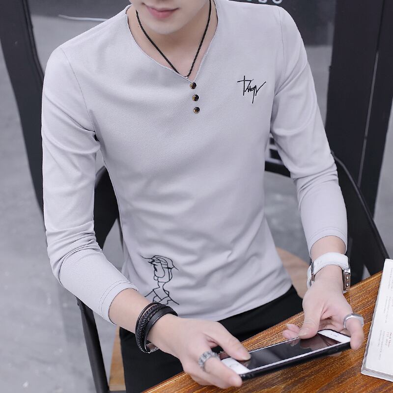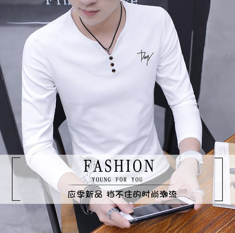 V-neck long-sleeved t-shirt men's spring and autumn tide brand bottoming shirt version of the self-cultivation spring jacket casual men's sweater ロング カジュアル スプリング 春物 オータム 秋物 Vネック Tシャツ doushi77915454184