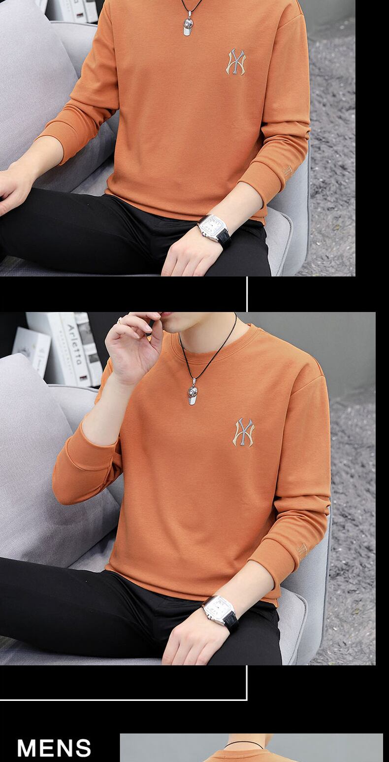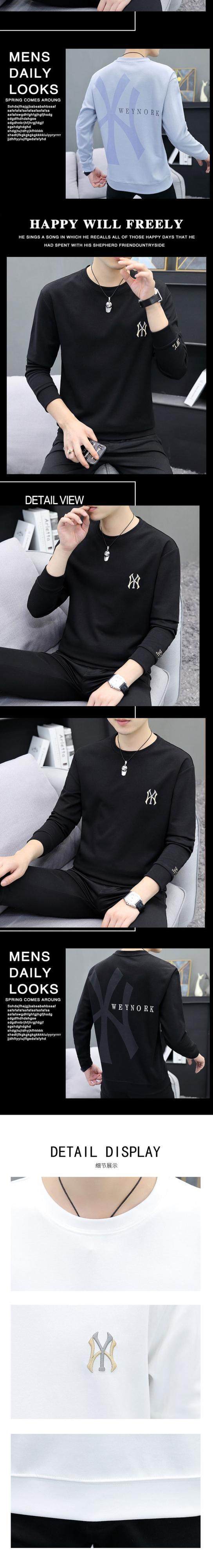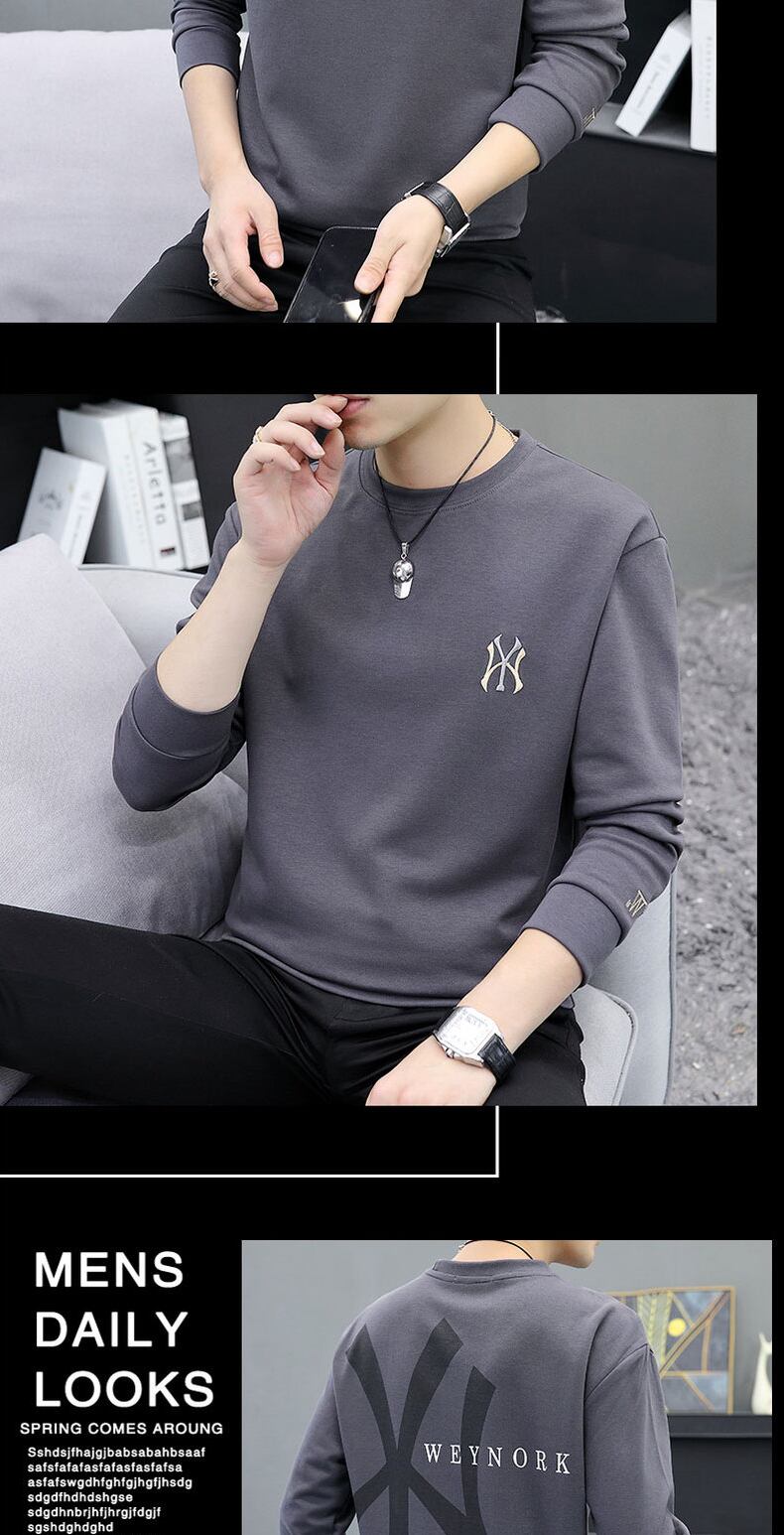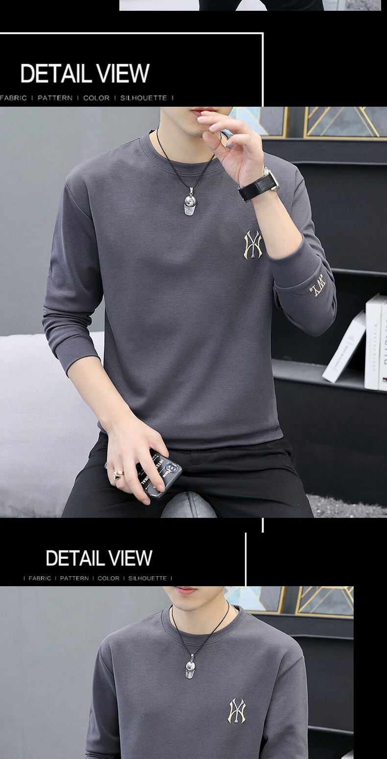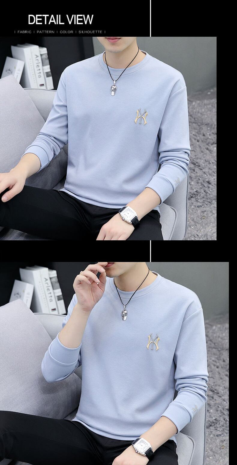 Men's sweater spring and autumn new trend loose embroidery spring clothes tide brand ins all-match white long-sleeved t-shirt ロング ホワイト 刺繍 スプリング 春物 オータム 秋物 Tシャツ doushi45791479295