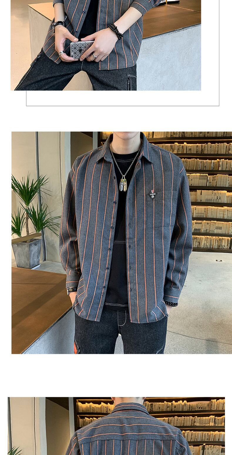2022 spring and autumn new men's version of the trend long-sleeved shirt striped shirt plaid handsome coat top clothes ロング スプリング 春物 オータム 秋物 ストライプ doushi15391965756