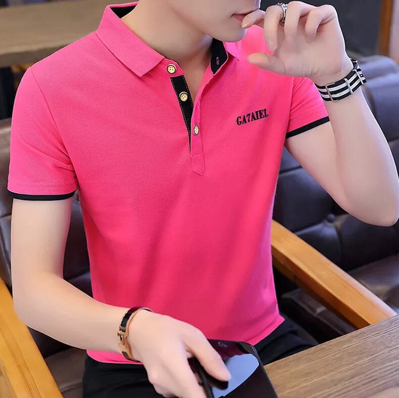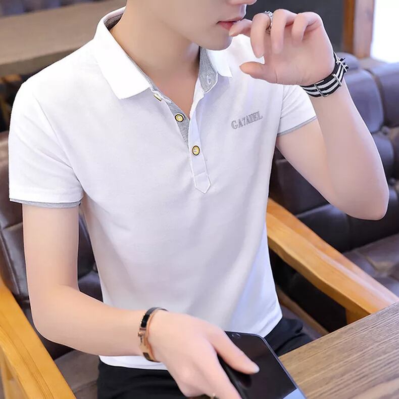 Summer short-sleeved shirt men's t-shirt with collar polo version trend shirt casual thin slim solid color clothes カジュアル サマー 夏物 スリム Tシャツ ソリッドカラー doushi17546192854