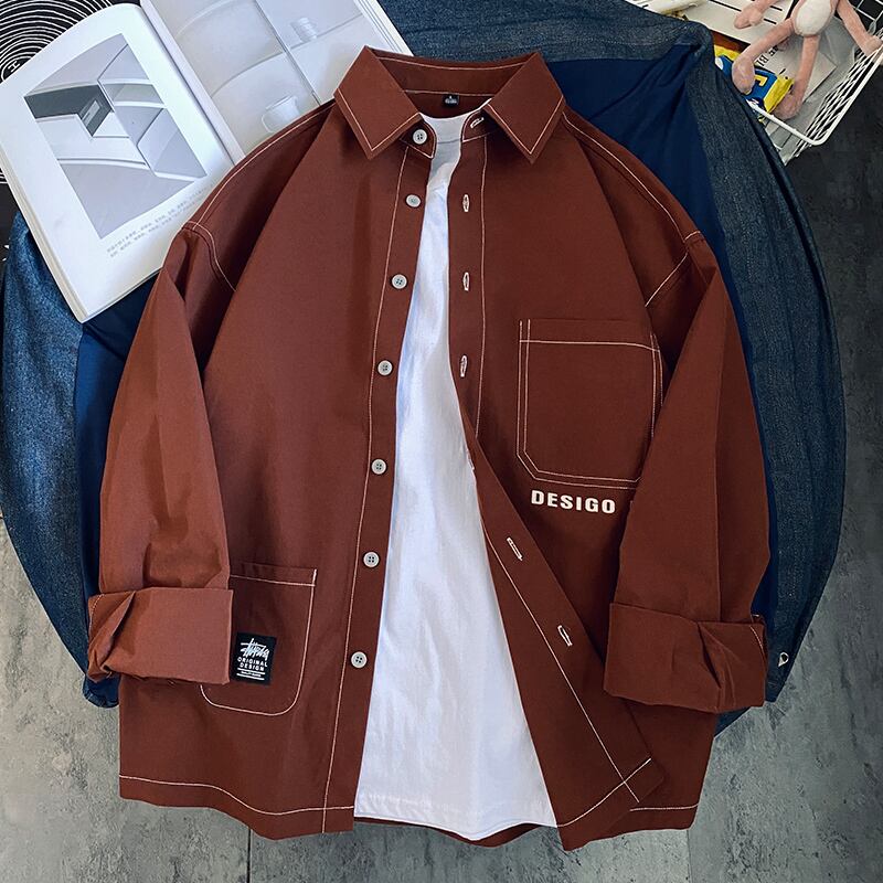 Men's casual long-sleeved shirt jacket spring and autumn 2022 tide brand loose ese Hong Kong style ins tide tooling shirt ロング カジュアル スプリング 春物 オータム 秋物 doushi32363861752
