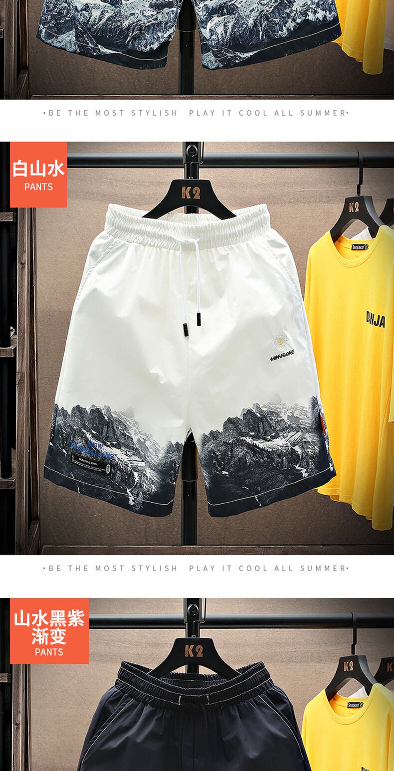 Men's ice silk shorts wear summer thin tide brand sports casual quick-drying beach pants five-point straight loose カジュアル サマー 夏物 ビーチ ショーツ ブルマー シルク doushi92559400394