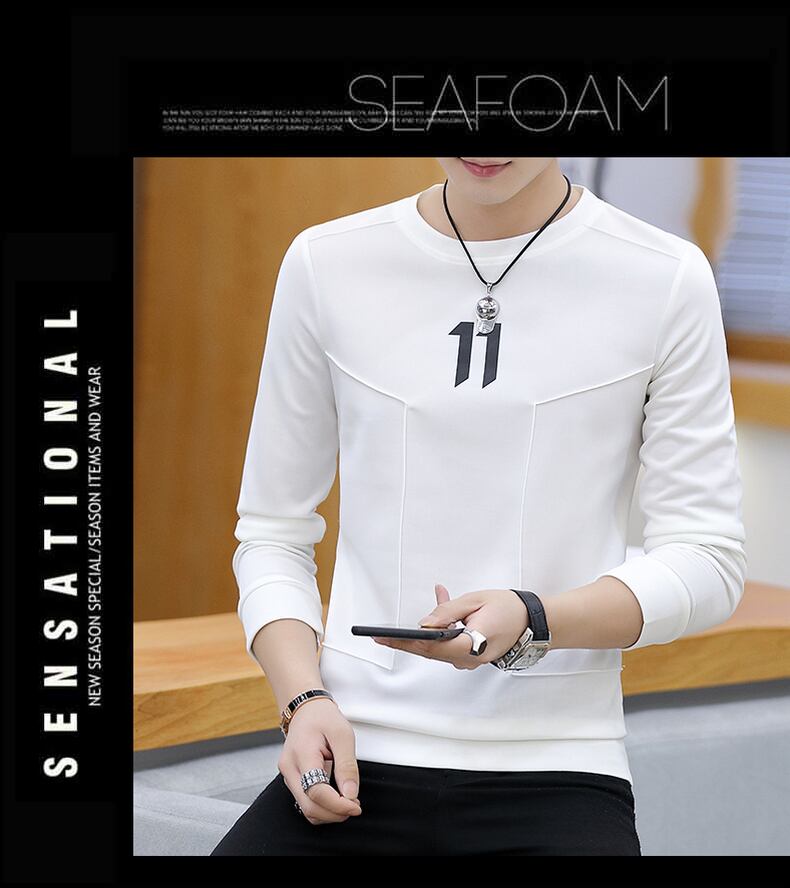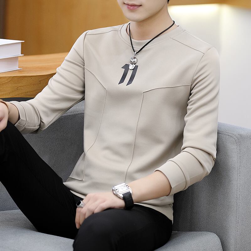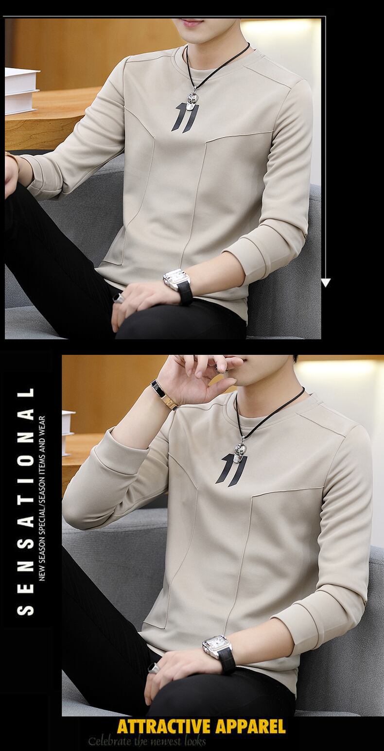 Long-sleeved T-shirt men's spring and autumn trend all-match round neck men's sweater slim and handsome t-shirt with bottoming shirt ロング スプリング 春物 オータム 秋物 Oネック スリム Tシャツ doushi38133999426