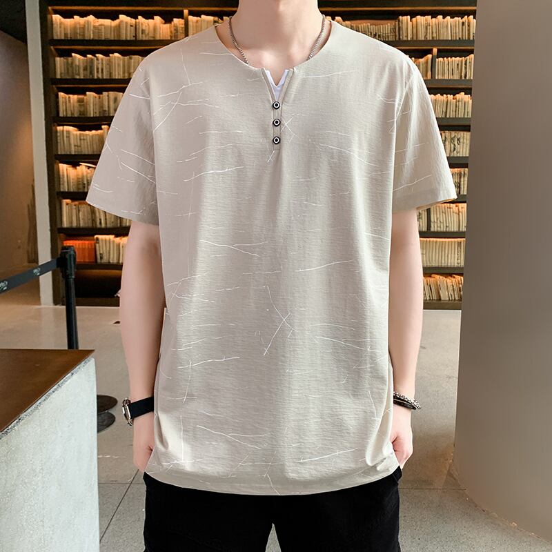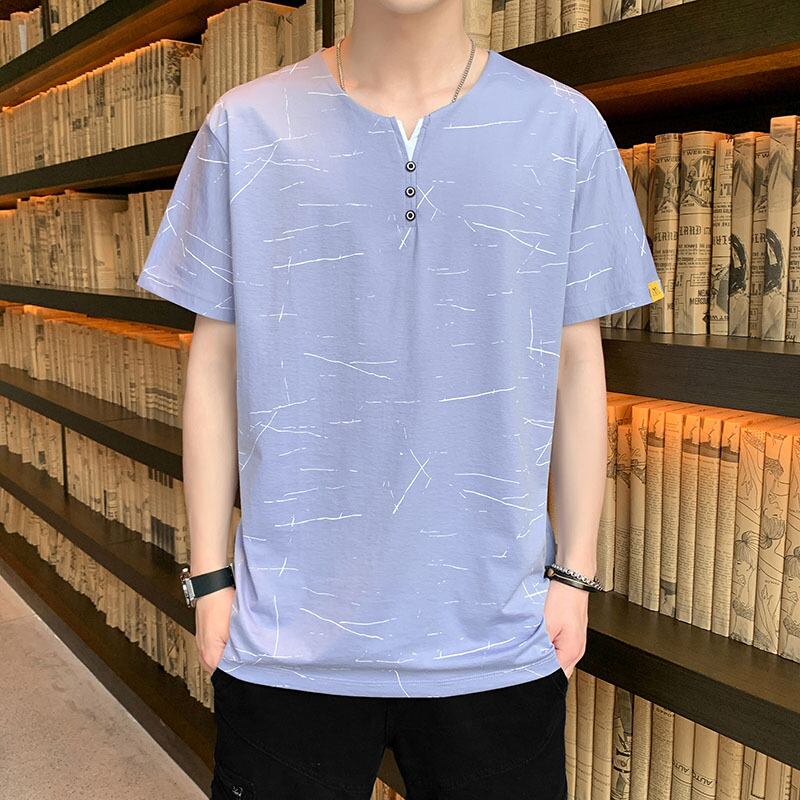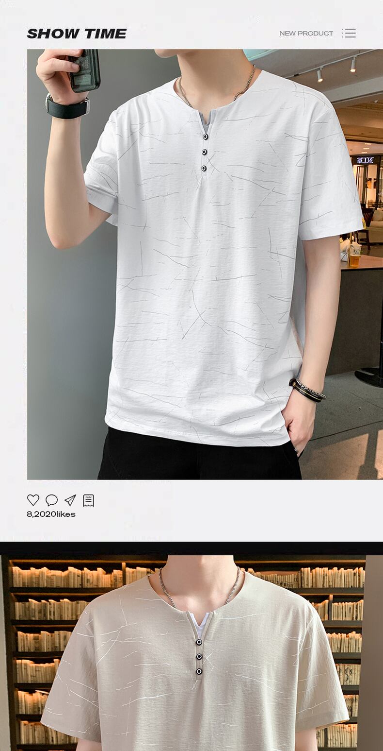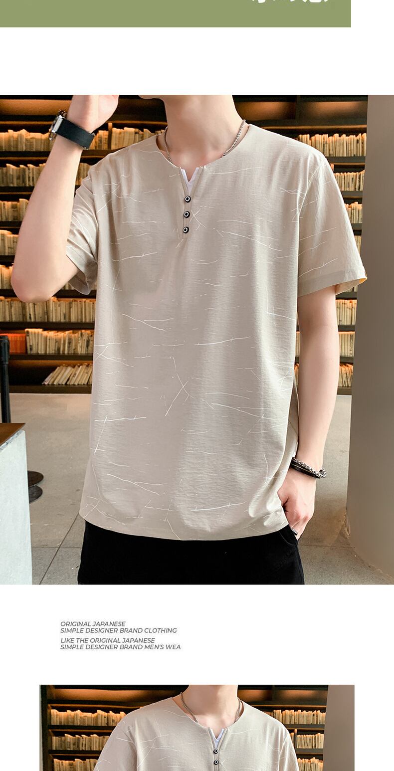 Ice Silk Men's Short Sleeve T-Shirt V-Neck 2022 Summer Simple Slim All-match Top Clothes Handsome Bottoming Shirt ショート 半袖 ハーフスリーブ サマー 夏物 Vネック スリム シルク Tシャツ doushi78125453590
