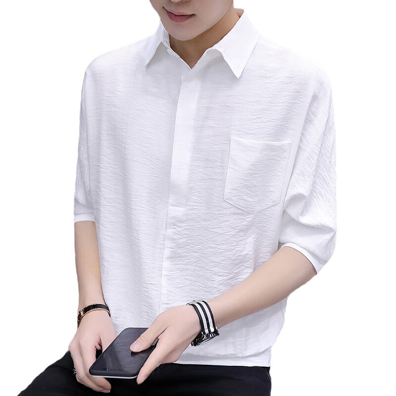 Men's three-quarter sleeve pullover shirt elastic waist spring and summer version of the trend in the sleeve shirt short-sleeved shirt trendy T-shirt エラスティック 伸縮 スプリング 春物 サマー 夏物 Tシャツ doushi37268059176