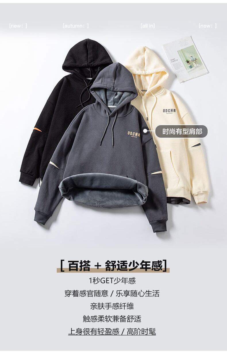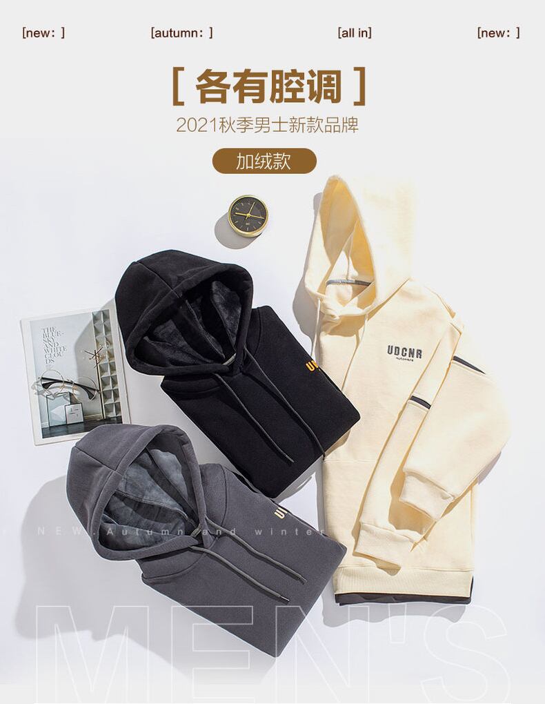 Spring and autumn new men's plus velvet thickening handsome bottoming shirt youth hooded trend autumn and winter outer wear warm sweater スプリング 春物 オータム 秋物 ウィンター 冬物 doushi91779568006